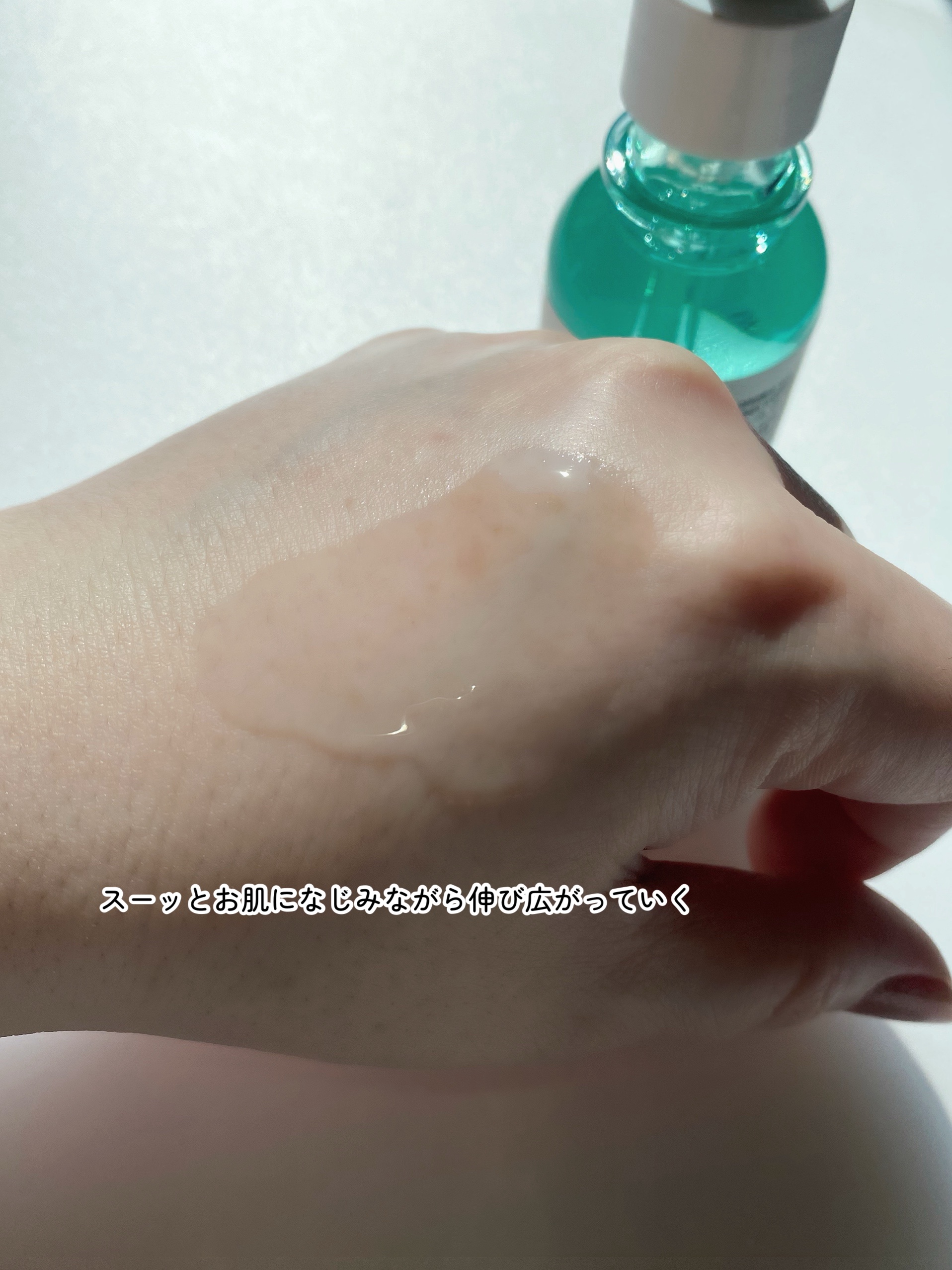 | とろみはあるけどベタつかず、伸ばしていくと肌がツヤっぽくなっていく◎ | 詳細を見る | ||