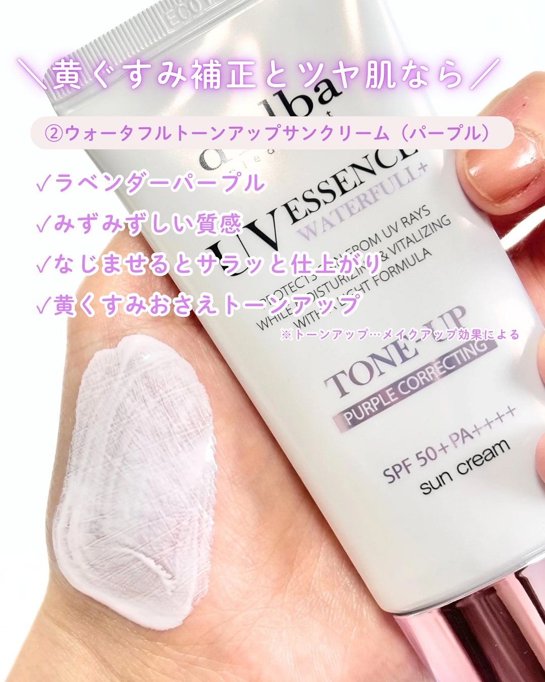 LemonSquareさんを通じて、dAlbaGlobalCo.,Ltd.さんからダルバトーンアップサンクリームを提供いただきました🎁ダルバウォータフルトーンアップサンクリーム・ピーチピンク・ラベンダーパープルクリーンティーツリーリポソームト...