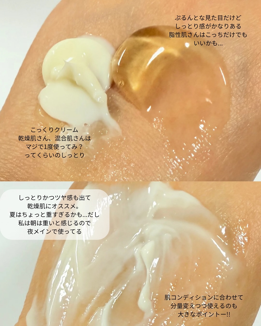 肌のコンディション/タイプに合わせてカスタムケア🍀 《アクアセラム》肌を水分チャージしながらやさしく整えて肌を落ち着かせる セラムとクリームをその日のお肌の状態に合わせてカスタマイズケアできる魅力的アイテム☺️🤍 肌タイプ問わず使いやすいし使い心地も良かった。 翌日もお肌に弾力と保湿を感じられたよ!