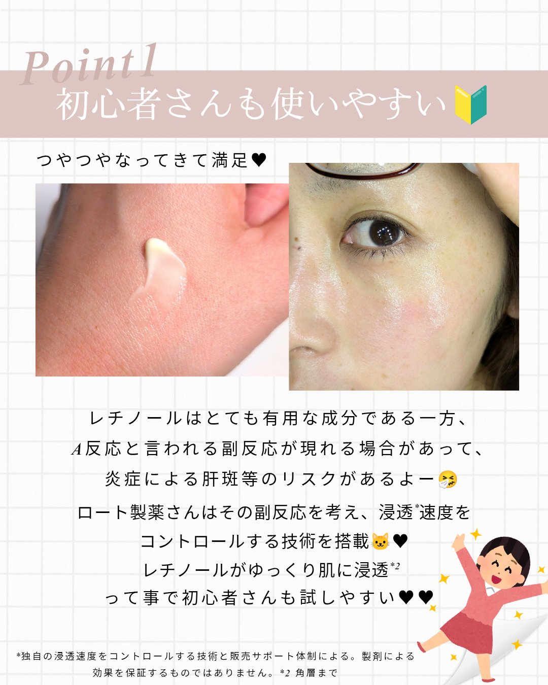 | スルスルっと伸びて、肌になじむとほんのりツヤ感を感じます。 後肌はさらり。 | 詳細を見る | ||