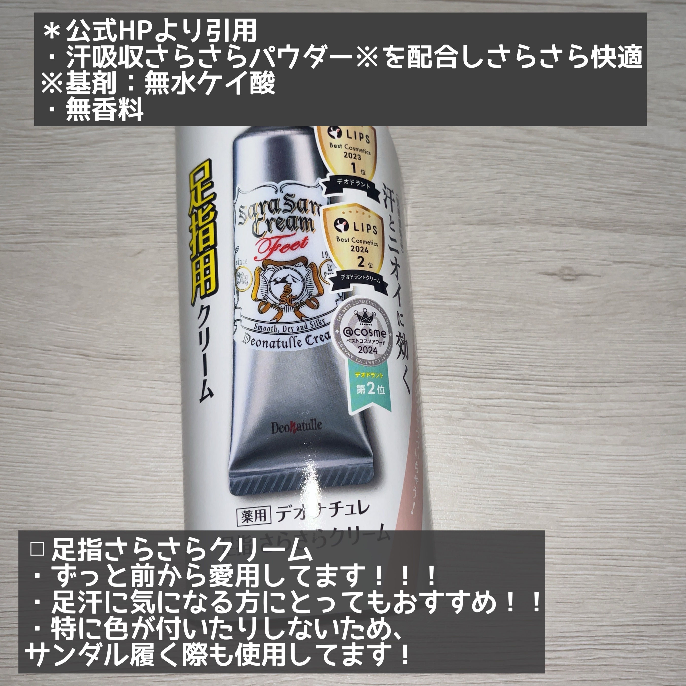 #PR#デオナチュレ#LIPSプレゼント#さらさらクリーム♡気になる脇のにおいに効く!クリームは硬めでベタつかないのがよかったです、#足指さらさらクリーム♡足ムレ、においに効く!クリームは伸びが良く使いやすい◎何本もリピしてるけど足汗が全く気...