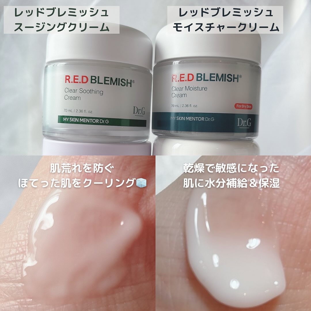 #PR#ドクタージーのレッドブレミッシュシリーズ4種比較🪄@drg_jp_officialそれぞれアプローチが違うから、肌の悩みやコンディションに合わせて選べるのが魅力✨✨💚クリアスージングクリーム💙クリアモイスチャークリーム💛リペアスージン...