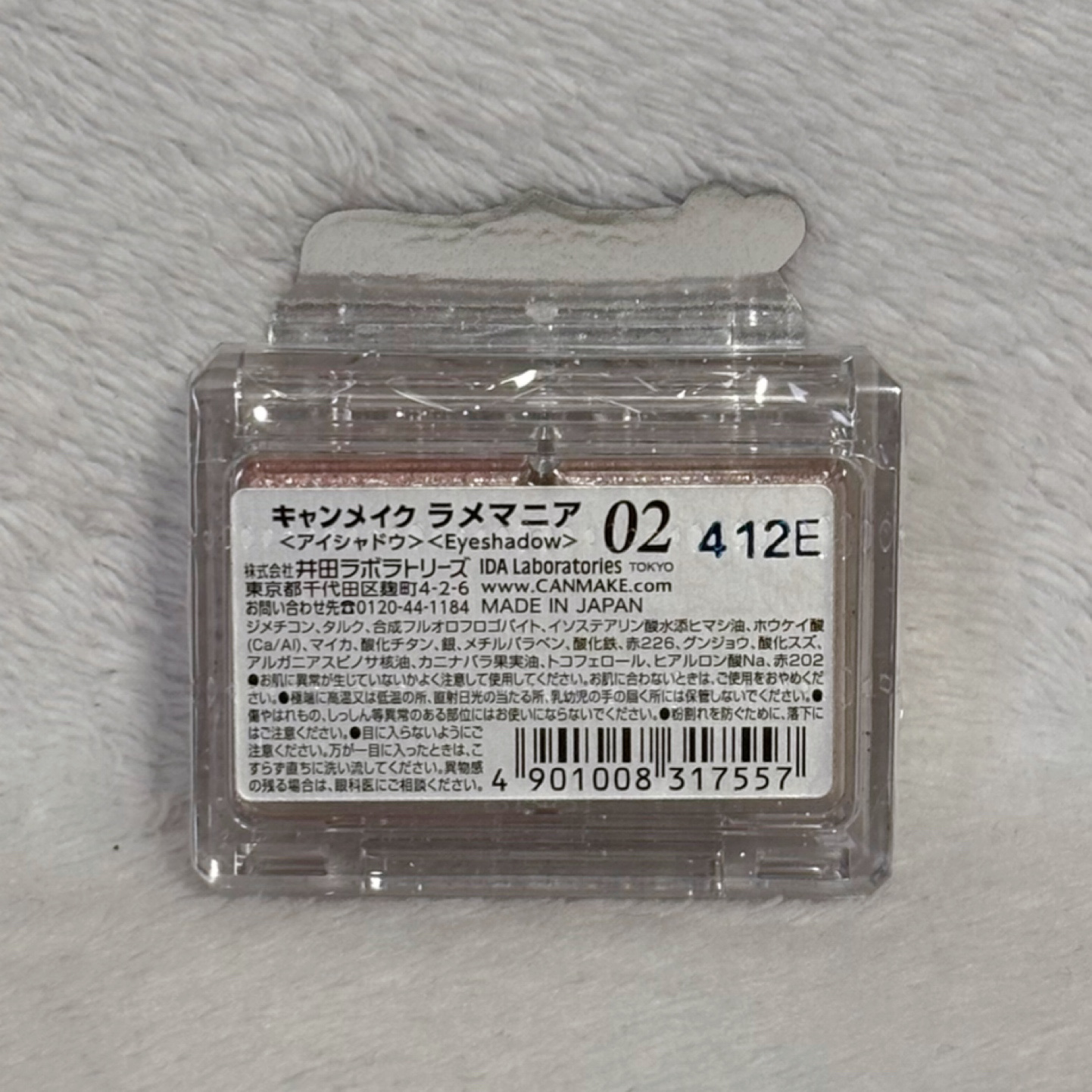 - ※03は2025年11月下旬よりロフト・プラザで先行発売。2026年3月下旬発売予定で2026年4月以降定番導入予定となります。 自分の気持ちを上げる♪ キャンメイク史上最もキラキラ!?ご褒美級ラメシャドウ✨ 高輝度、高密着! ラメ好きさんには是非使ってほしい✨ まるで発光しているかのように輝く大粒ラメアイシャドウです。 他のアイシャドウの上から重ねても濁らない 透明度の高いラメで、美しい輝きが楽しめます。 まるでラメの膜が張るようにぴたっと密着! ラメ飛びしにくく、キレイな仕上がりが長時間続きます。 【同系色の2色入り】 左:カラーレスメイクや、淡いアイシャドウに合わせやすいラメ 右:ほんのりベースカラーが発色する、華やかなカラーラメ