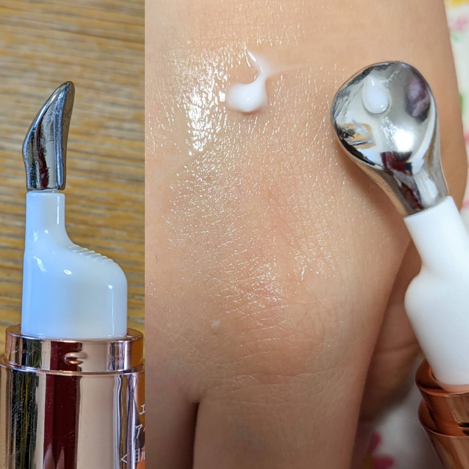 マスクを取り出すと深いいい香りがします🤩リラックスする深い香りです天然精油を配合しています🥰 液が弾力・粘りがあり有効成分が濃縮されているのが分かります パック中も香りがして気持ちがリラックスしました💆 肌がコーティングされたようです👍 香り高く濃縮されたクリームです こちらも香り高くて気持ちがとても癒されます🌺 手のひらに肌が吸い付くほど潤いました✨