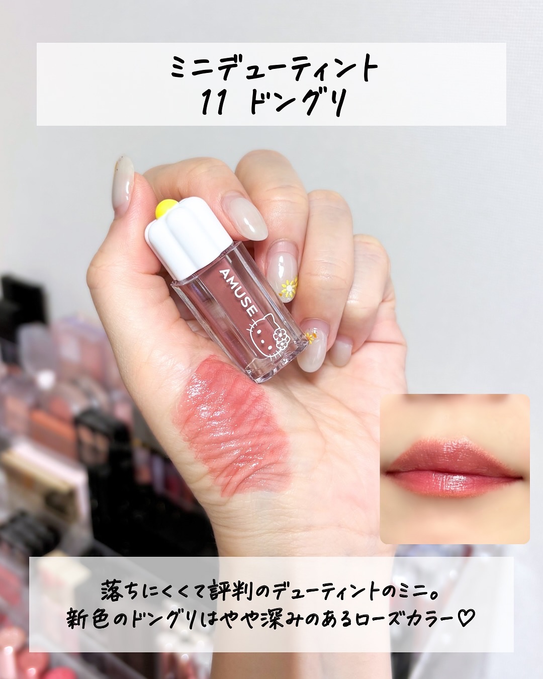 🎀AMUSE🎀🕶️デューティント11ドングリ🏄ジェルフィットティント10ピーチベイビー大好きなキティちゃんとAMUSEのコラボコスメ😻❣️#Qoo10メガ割で購入しました🎶ジェルフィットティントの方はかわいいミニキャリーも付いてました🧳日焼け...