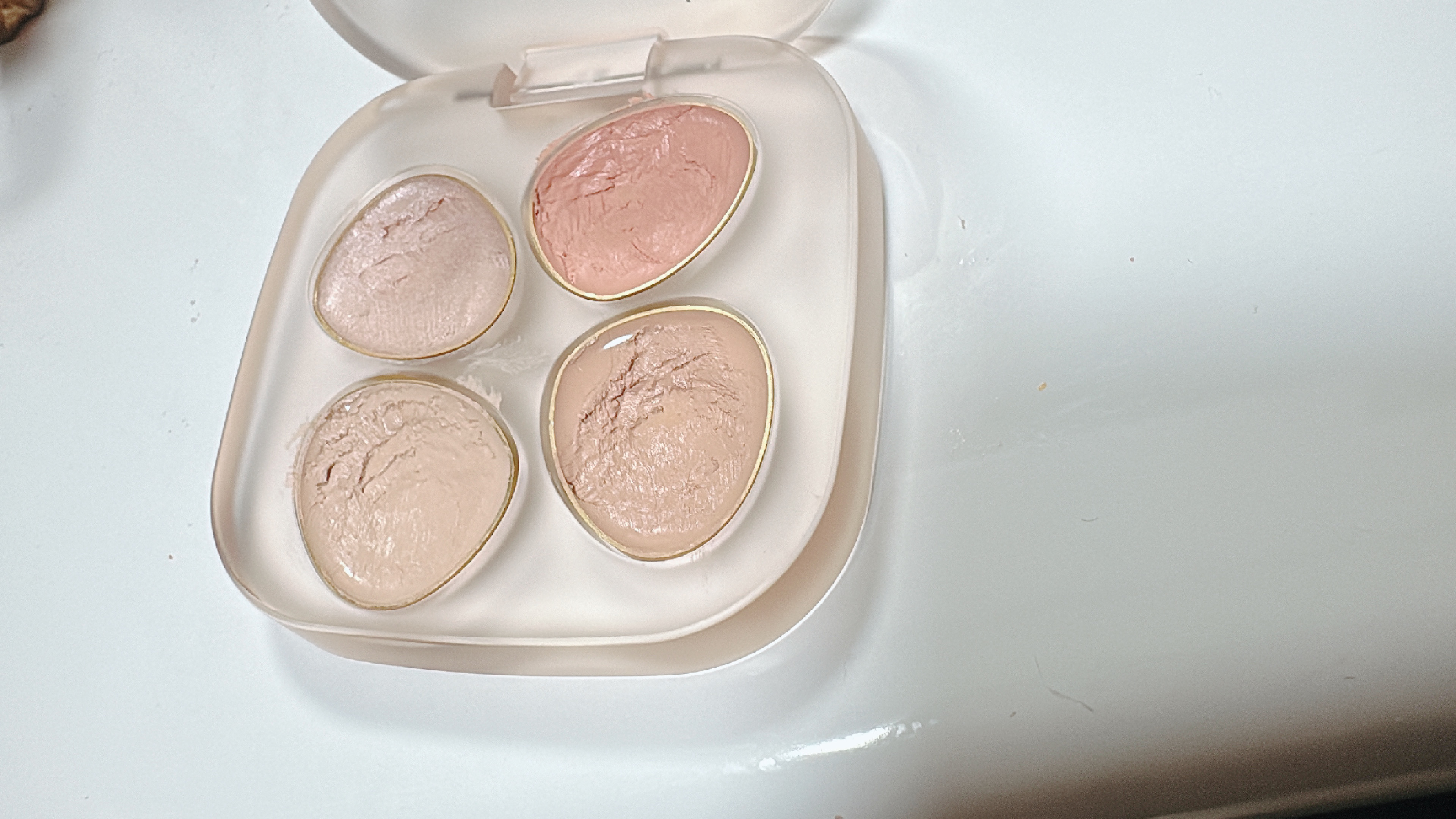今までパレットコンシーラーだと厚塗りになりやすく使いこなせなかったのですがこれなら厚ぼったくならず使いこなせそう✨ 最近クマが気になり始めたので右上のコーラルベージュををクマ隠しとして使用。 下の2色でくすみや小鼻の赤みを消して左上のハイライトカラーで鼻根など窪んだところにハイライトとして使用しました😌