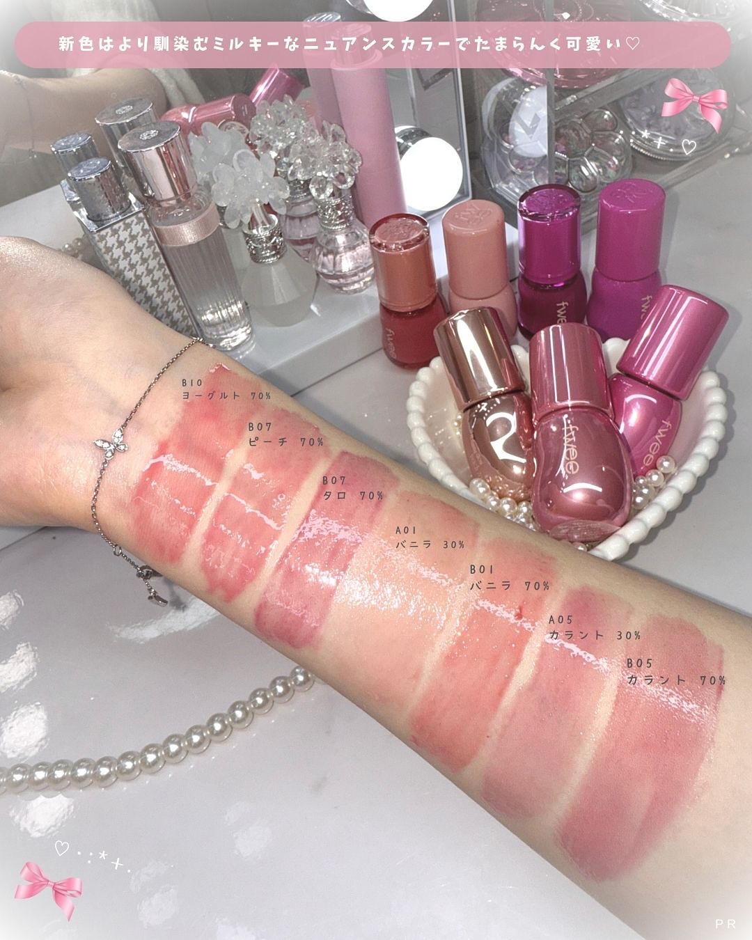 ねっとり水飴のようなグロスで めちゃくちゃかわいいいい🩷 ブルベ夏の私は04番が最推しだけど 正直全色可愛くて選べん...🥺🤍 @romand_jp #リップ#グロス#ロムアンド#ロムアンドグロス #ロムアンド新作#グラスティングカラーグロス#粘膜リップ#ウサギ舌 #全色レポ#コスメレポ#新作コスメ2024#韓国コスメ #韓国コスメ購入品
