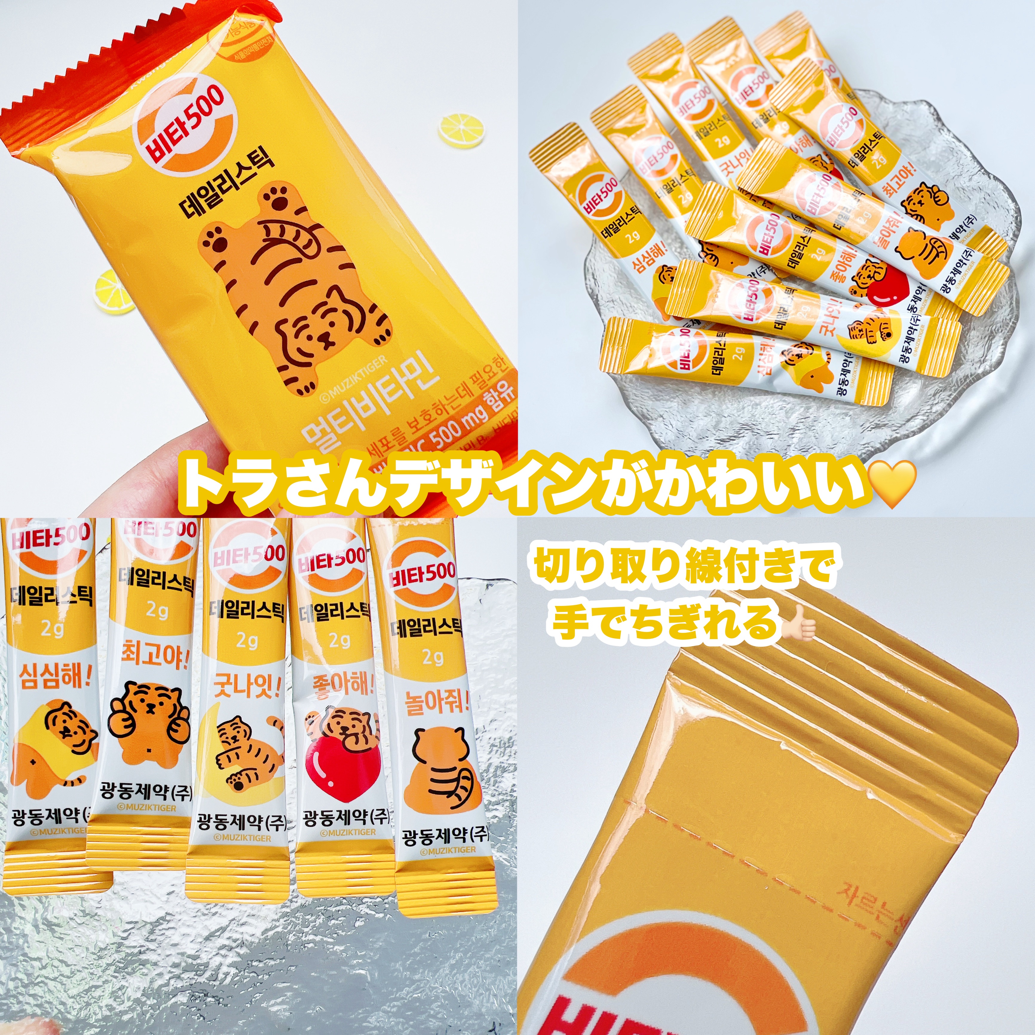 KWANGDONGVita500デイリースティック180包 半年分だからすごいでかい笑6月のメガ割で、半額クーポン勝ちとってたくさん購入したの❤️トラの絵が可愛いすぎる🐯10本ずつ個包装になっています1スティックで500㎎のビタミンが摂取でき...