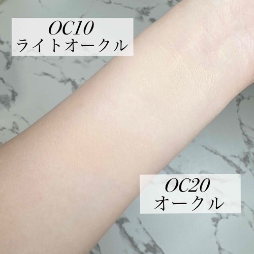 - <OC10,20共通> 配合成分:タルク、合成金雲母、酸化チタン、窒化ホウ素、硫酸Ba、(HDI/トリメチロールヘキシルラクトン)クロスポリマー、ジメチコン、(ビニルジメチコン/メチコンシルセスキオキサン)クロスポリマー、メトキシケイヒ酸エチルヘキシル、酸化亜鉛、シリカ、マイカ、ミリスチン酸亜鉛、甘草フラボノイド、アルブチン、パルミチン酸アスコルビル、ヒアルロン酸Na、ポリクオタニウム-51、(ジメチコン/ビニルジメチコン)クロスポリマー、水、水酸化Al、シクロヘキサン-1,4-ジカルボン酸ビスエトキシジグリコール、ジカプリン酸ネオペンチルグリコール、ハイドロゲンジメチコン、ミリスチン酸Mg、リンゴ酸ジイソステアリル、BHT、トコフェロール、フェノキシエタノール、メチルパラベン、ブチルパラベン、酸化鉄