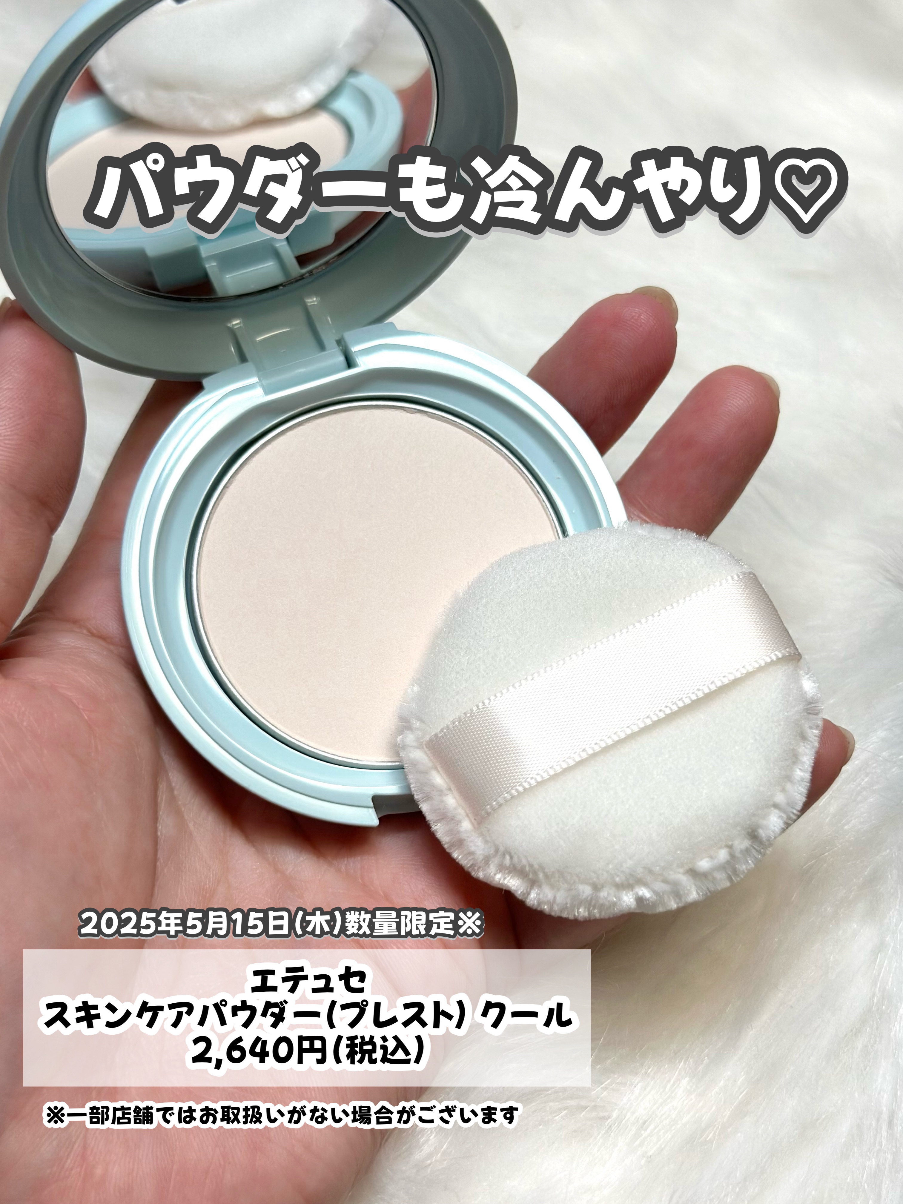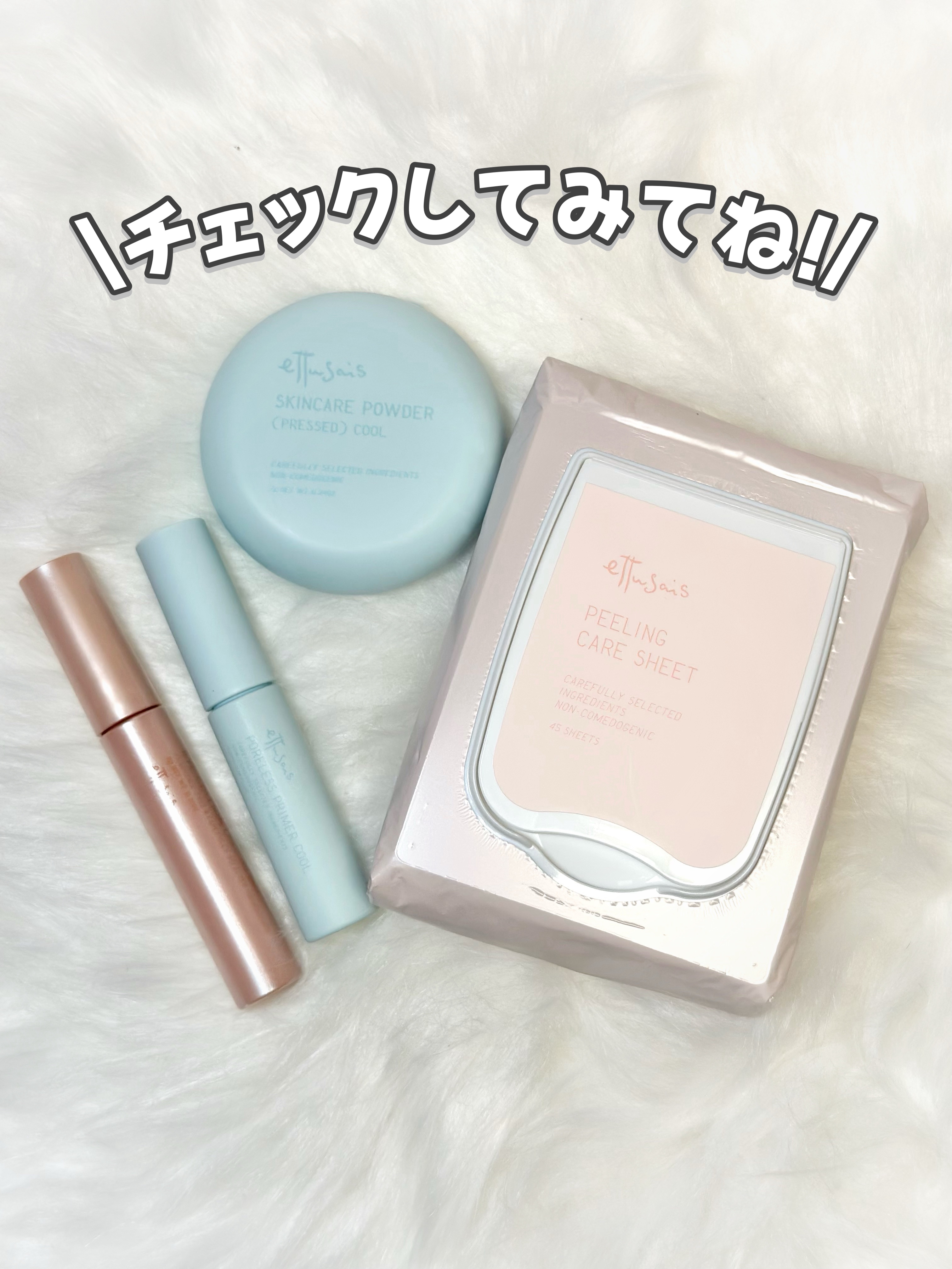 夏にぴったりなエテュセのひんやりクールタイプ❄️✨ピーリングケアシートで拭き取り、汗・皮脂・毛穴汚れをオフ❣️ポアレスプライマーで毛穴の凹凸をフォーカスしてからスキンケアパウダーを使うのめちゃくちゃおすすめ!!スキンケアパウダーは、肌になじみ...