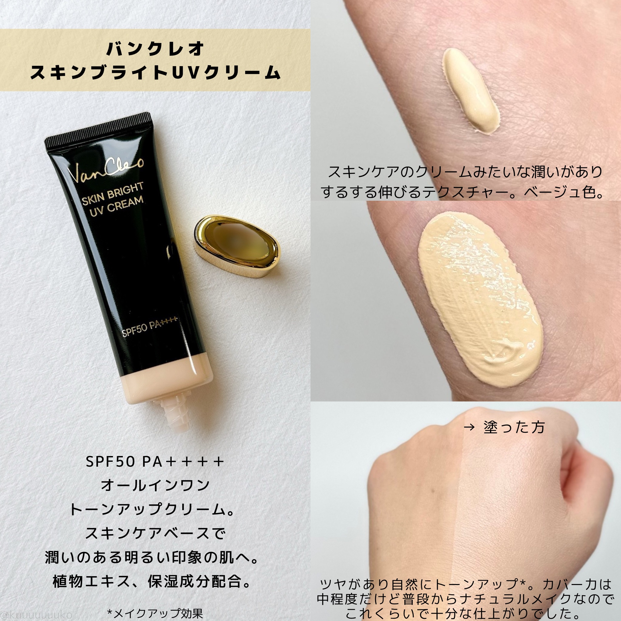 VanCleoのスキンブライトUVクリーム✨美容成分配合しっとりクリームタイプの化粧下地☺️💕紫外線から肌を守り、潤いを与え、トーンアップも🫶🏼軽いお出かけならこれ1本でOK🥰むしろこれだけの方が綺麗に決まるかも😆#PR#バンクレオ#ナチュラ...
