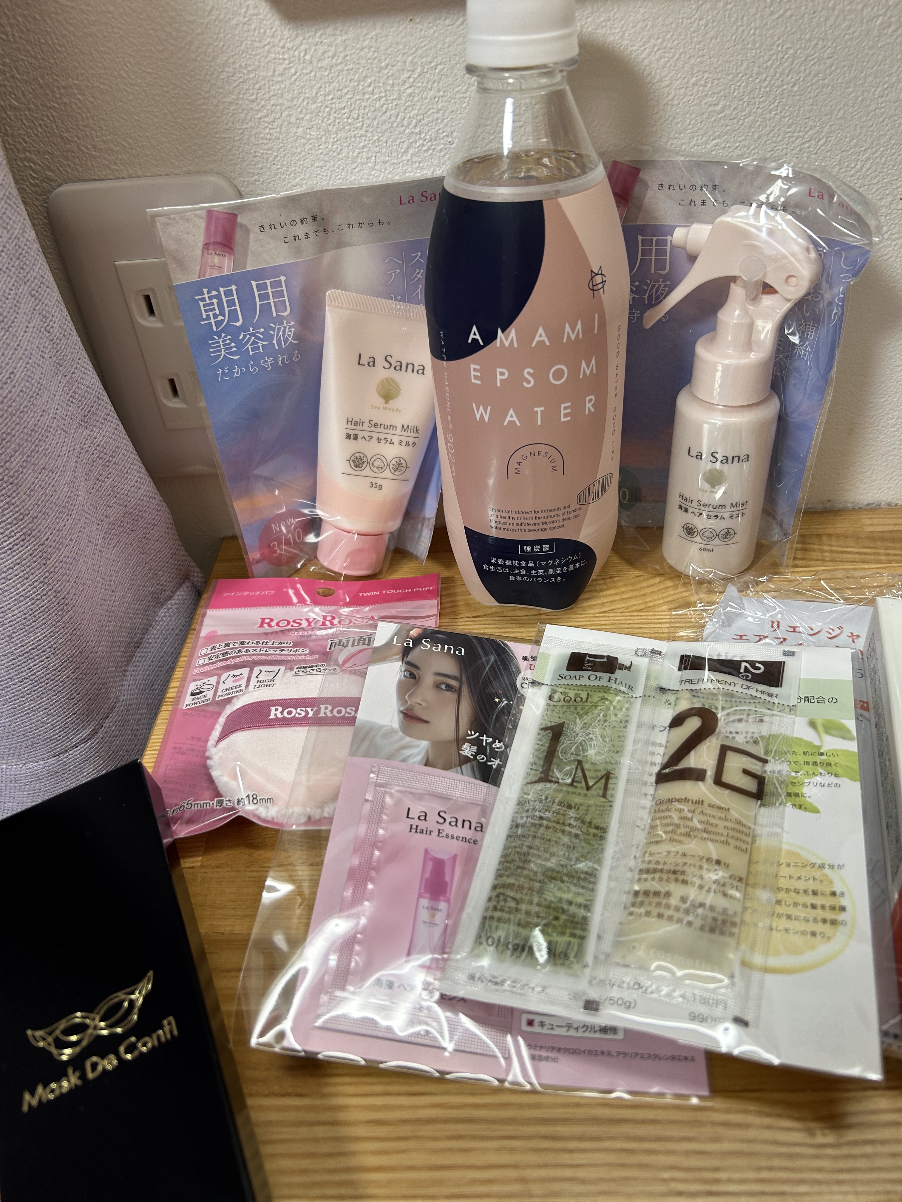 アッププラスビューティー定期便2025年6月号現品・モイストラボトーンアップ下地ローズピンク・エプソムウォーター・MaskDeConfiカバーフィット ファンデーションナチュラルベージュミニサイズ・ラサーナ海藻ヘアセラムミルクモーニングリペ...