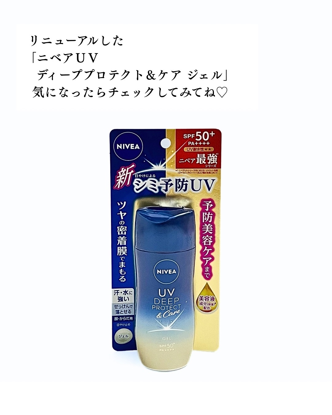 ニベア花王からいただきましたニベアUVディーププロテクト&ケアジェルを使わせていただきました☺️もともとニベアの日焼け止めは去年もお世話になったのですがリニューアルしたとのこと☺️新日やけによるシミ予防*1UV全身にたっぷり使えるのびの良いジ...