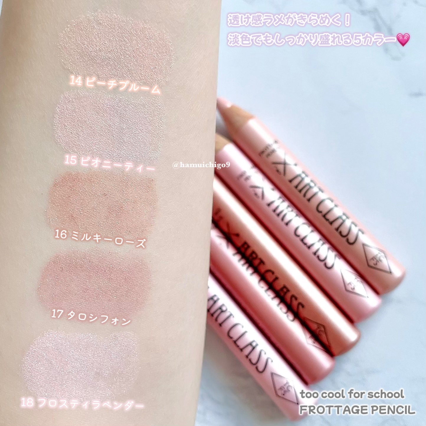 #PR#提供with_beauty_lab様を通してtoocoolforschoolのフロッタージュペンシル17.18をいただきました♡✨新色‼✨17はブラウン基調のモーブ、18は明るい白みピンクだよ☺ビックリするくらいさらさらかけて、よれに...