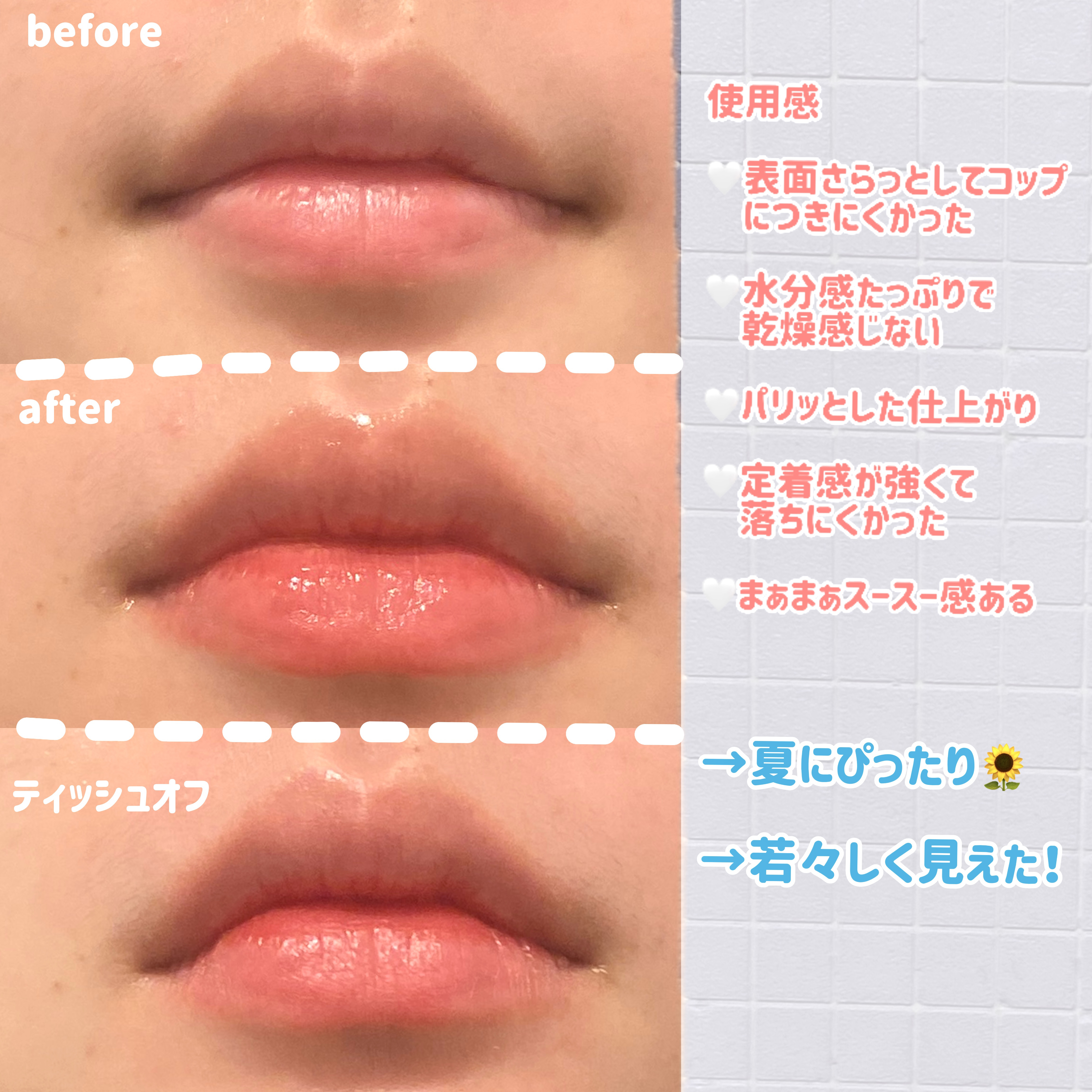 | リップティントランキング第58位 | なめらかな塗り心地で色鮮やかで透明感のあるカラー😊みずみずしさ、プルン感がとにかく可愛い💕 | 詳細を見る | |