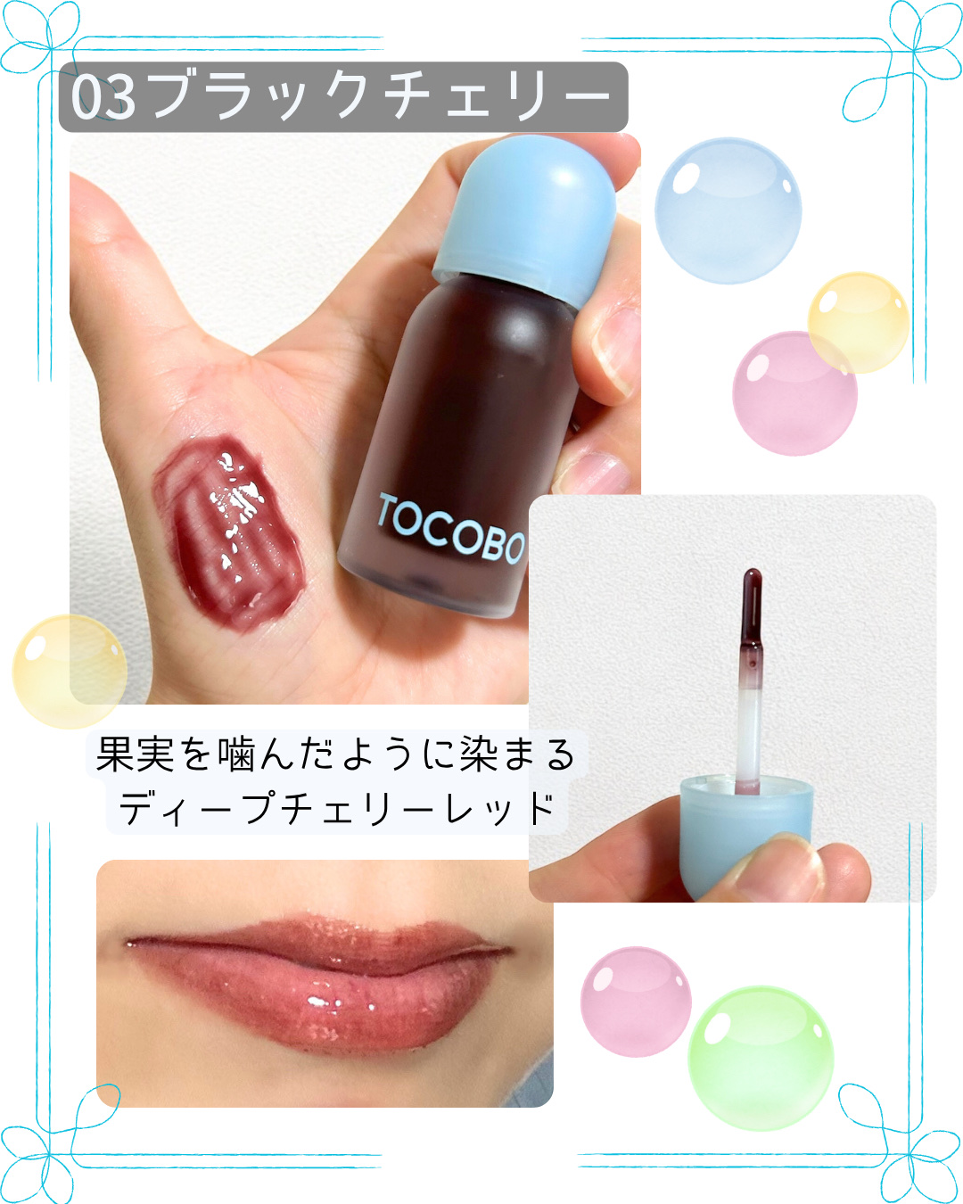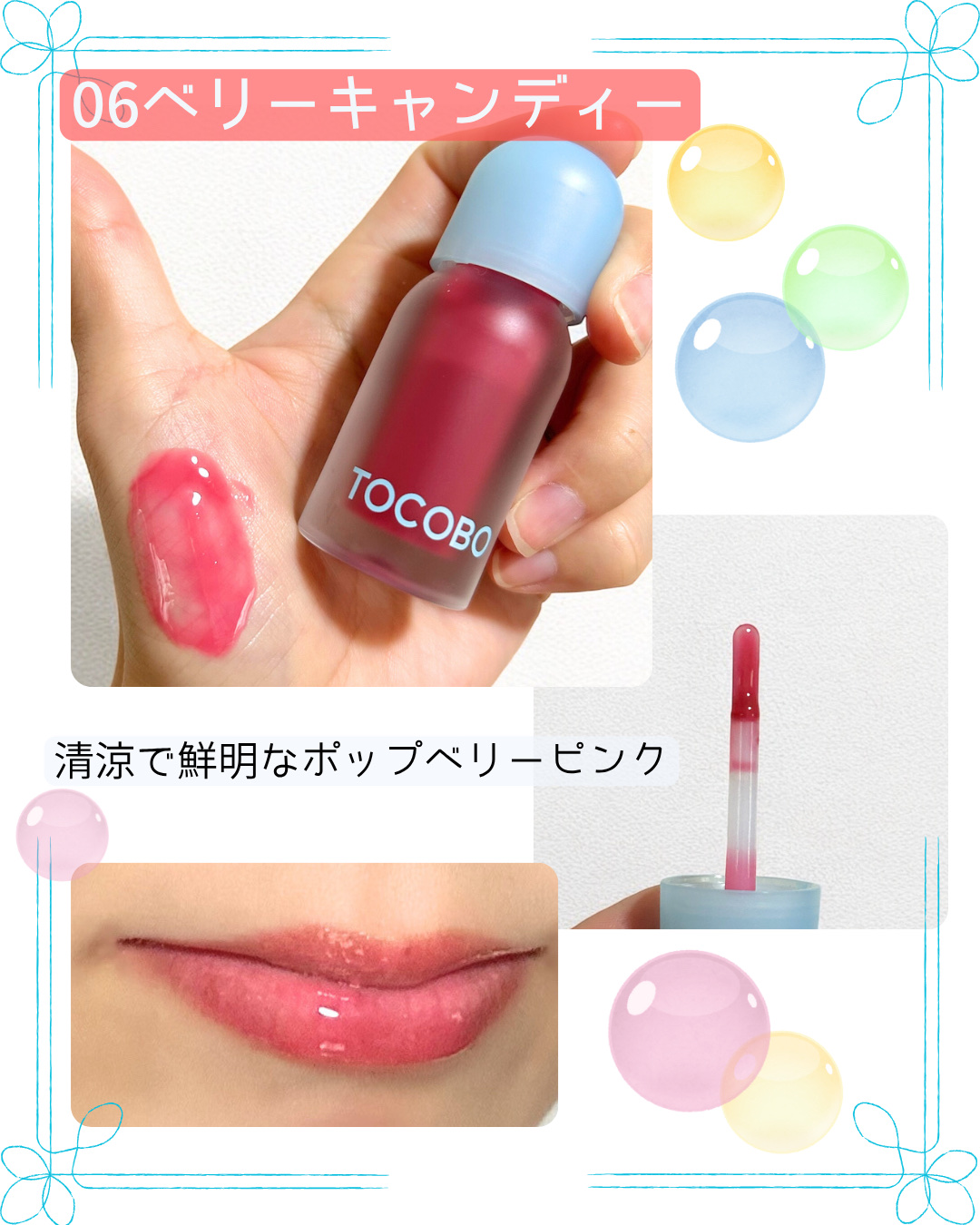🎀TOCOBO♥︎ジューシーベリープランピングリップオイル♥︎・〜ぷっくりとしたボリュームと輝くリップの光のダブルプランピング効果でドラマチックなオーバーリップを演出〜・日本限定発売を含め、4色を使ってみました♪・🧊フローズンベリー🧊神秘な輝...