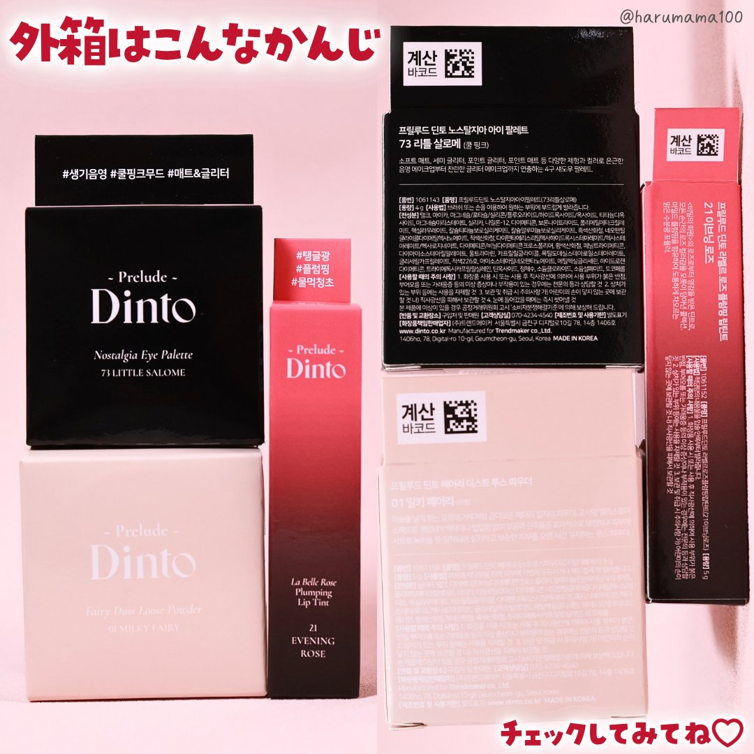 韓国ダイソー×DintoPreludeDintoが7月1日からQoo10で発売開始されます☺️アイシャドウは苺みるくのようなピンク2色に細かいキラキララメ✨リップはマイルドなプランピング効果を感じる絶妙な柔らかローズ💞パウダーはほんのりアイボ...
