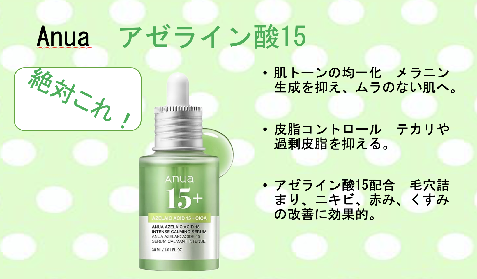 商品詳細情報Anua アゼライン酸15 インテンスカーミングセラム