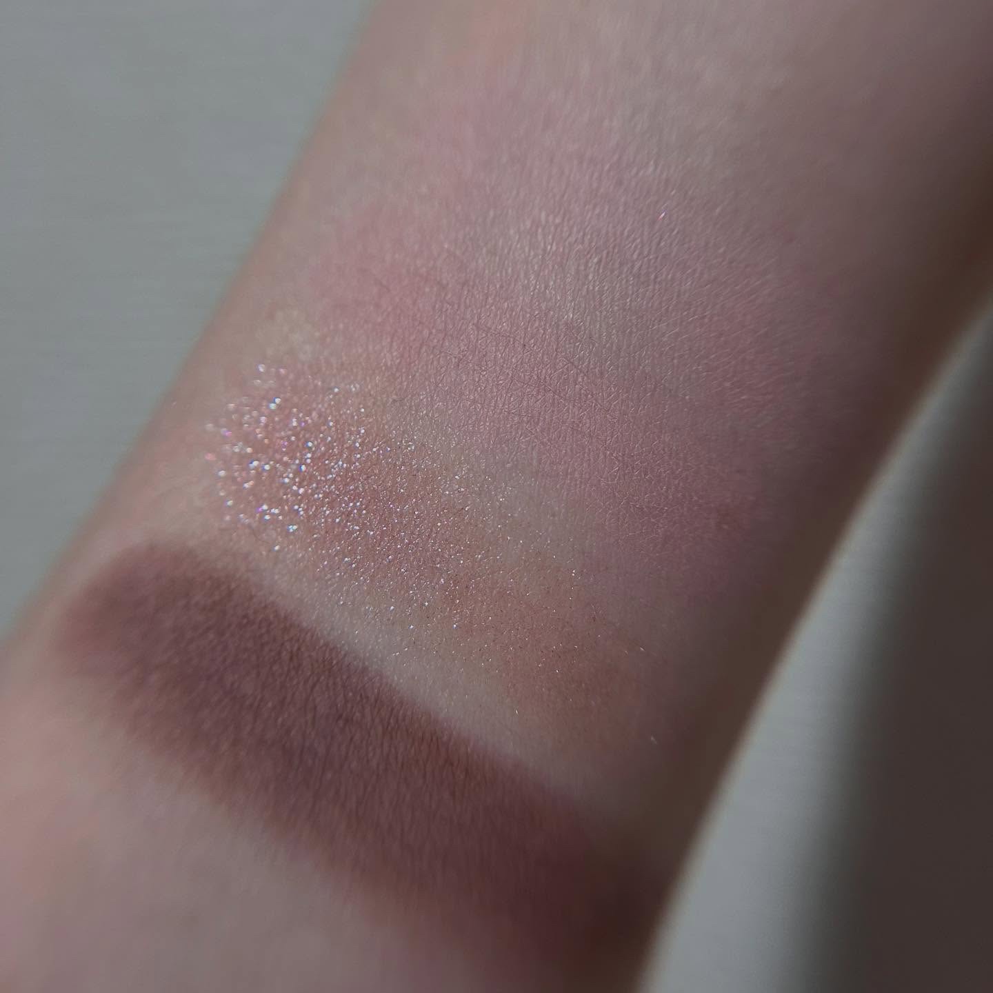 まずですね、ブルベよりかと思いきや、真ん中がピンク系ブラウンなんですよ! 真ん中の色が中和役になりますね! そして左上のグレイッシュカラー…既視感あるなーと思ったら大好きなモノクルールのベージュミッツァ! スウォッチで比べてみたらサンクの方がグレイッシュでしたね! 締め色もしっかりしてるしトータル的にバランスのいいパレット そしてやはり粉質が好きですね! ベースなしで使っても色もちも発色も抜群すぎてDiorさん流石ですってなりました👍 どちらかというとサマーよりのカラーの方が透明感がでます^ ^ ニュートラルな肌でサマー要素やブルベよりの肌の方はとってもハマるブラウンシャドウだと思います🥰 一つ前に投稿したルミナイザーと合わせても可愛くてお気に入りです♪