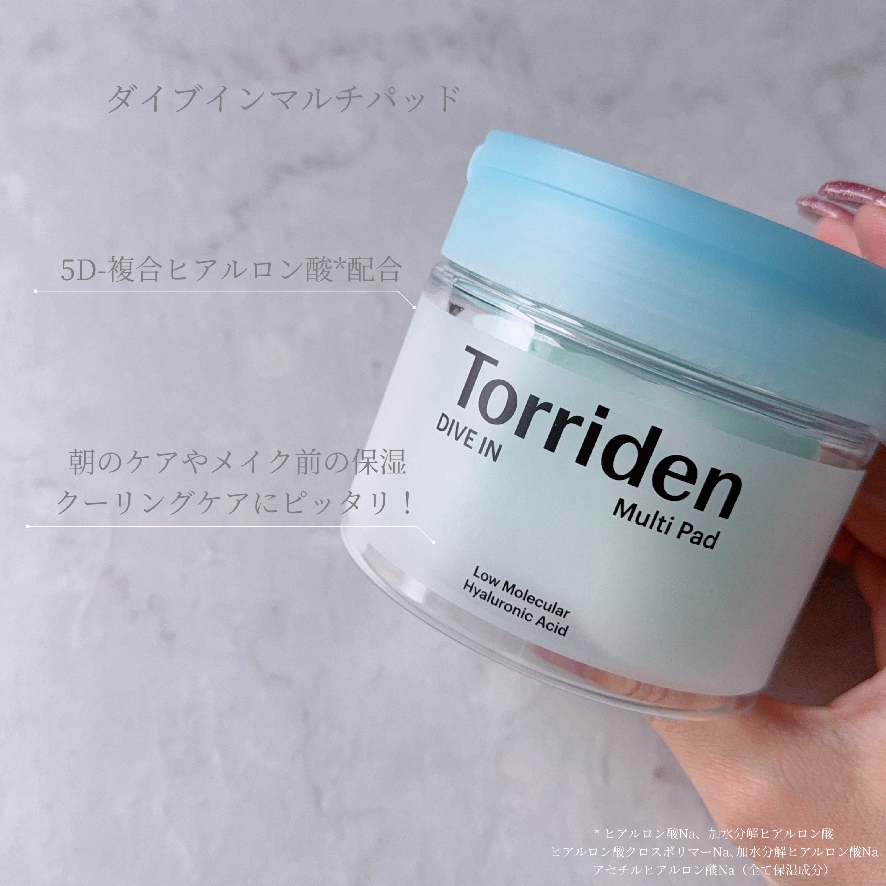 Torridenダイブインセラム&ダイブインマルチパッド♡🩵ダイブインマルチパッド拭き取りにも、部分用パックにも使えるマルチユースなセラムパッド!エッセンスたっぷりのパッドで手軽に水分チャージ&クーリングケア✨忙しい朝のスキンケア、メイク前の...