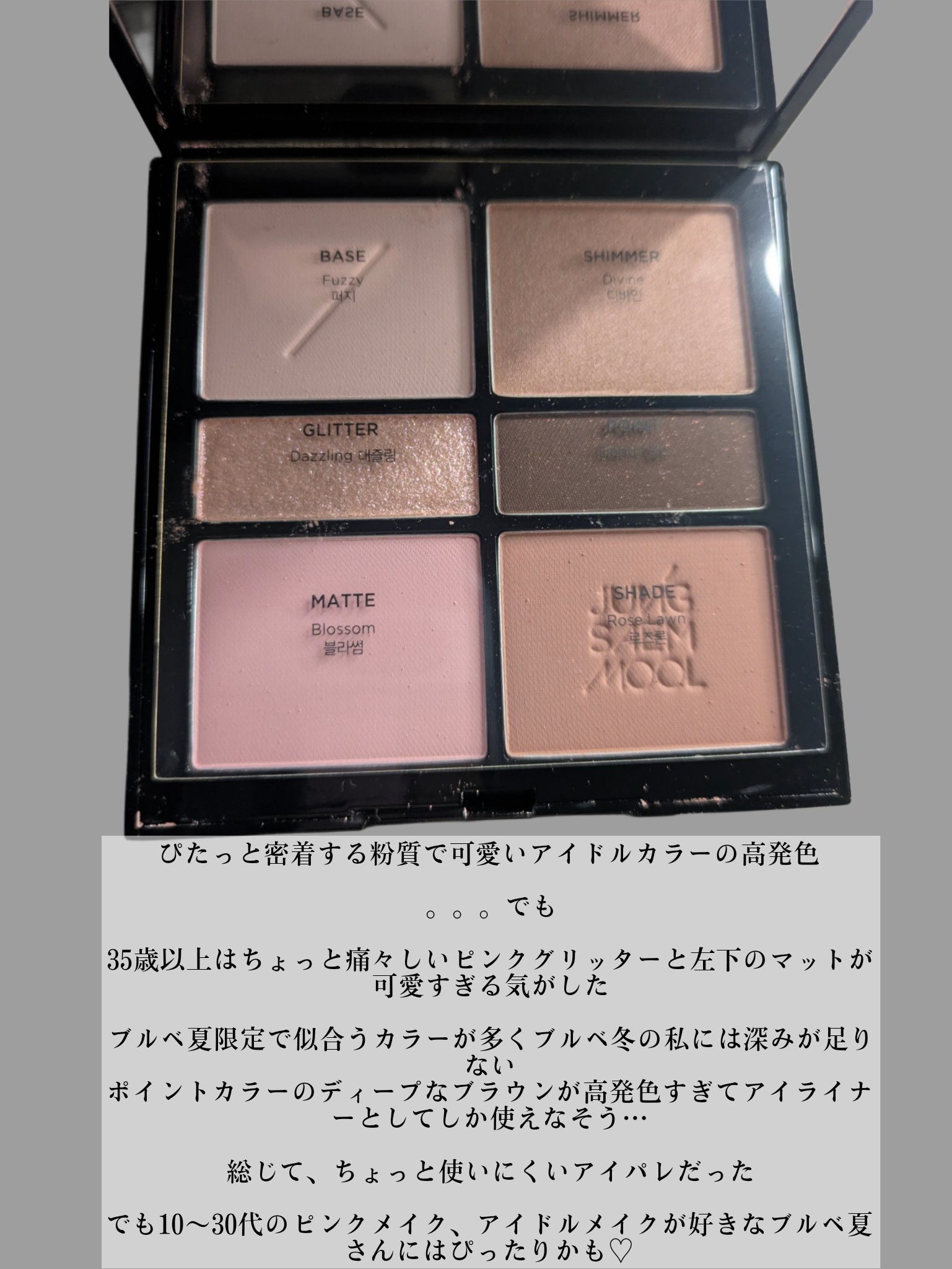 ジョンセンムルアーティストアイパレットソフトムード¥6,278下地やクッションファンデで有名なジョンセンムルのアイシャドウパレットをオリーブヤングで購入しました🫒発色やラメ感は控えめでとても上品な色付きです✨アイシャドウパレットですが、シェー...