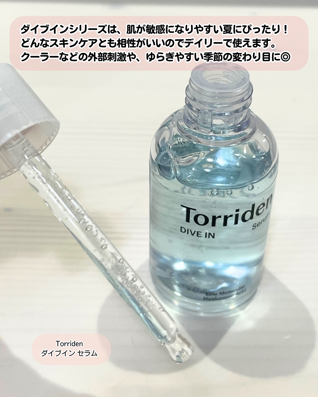 ・Torriden@torriden_jp◯ダイブインセラム50ml◯ダイブインマルチパッド80ea肌が敏感になりやすい夏にぴったり🌟普通肌、乾燥肌、脂性肌、混合肌、敏感肌、インナードライ肌など使用タイミング、量を調整すると季節の変わり目でも...