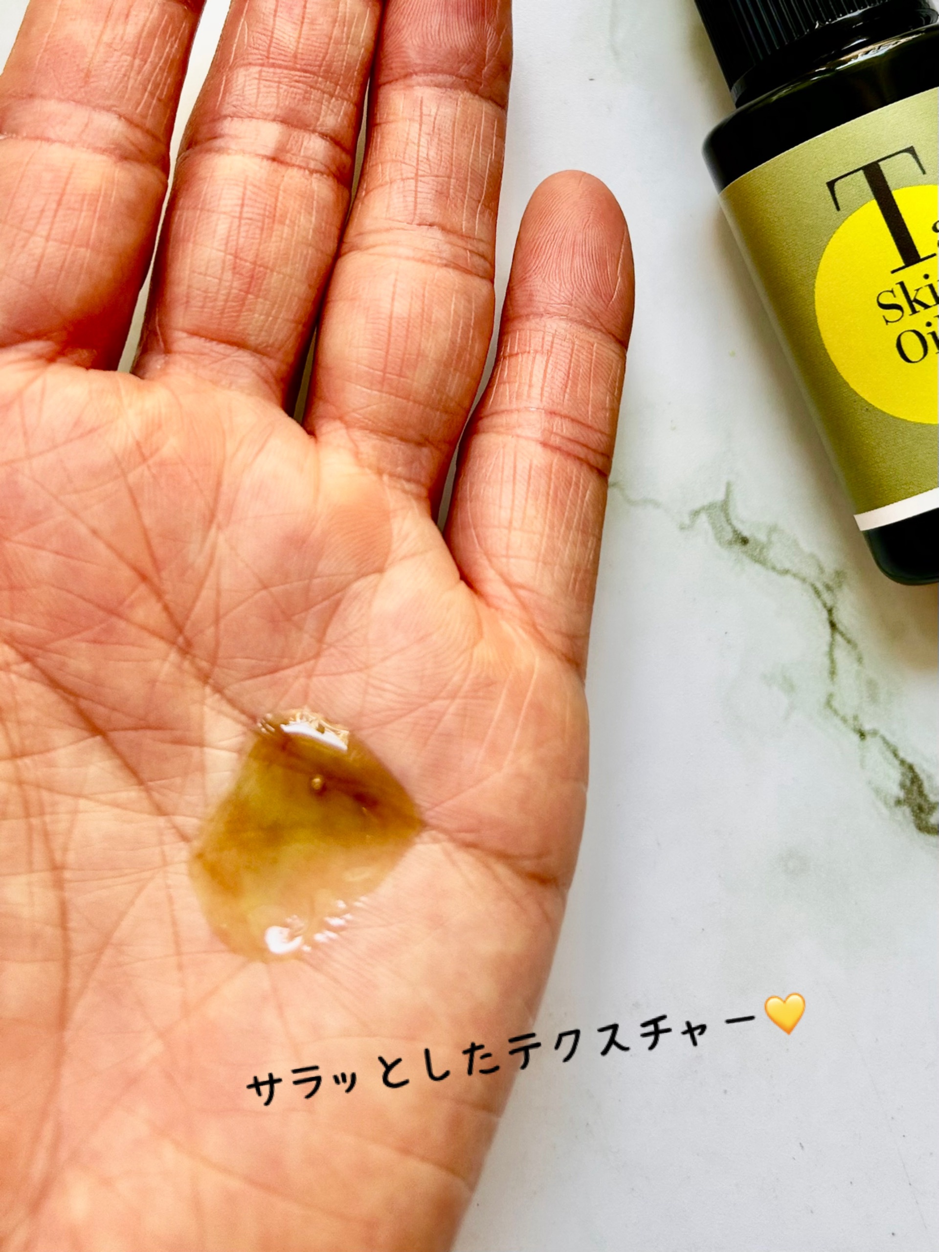 しっとりな使い心地がうれしい💛 高級感のあるガラスボトルがとっても素敵です! オイル層とローション層に分かれてるのでまずはよ~く振ってから使ってね。 オイルが入っているとは思えないようなサラッとしたテクスチャー✨ なじませると、みずみずしく しっとりとした使い心地です🤍 肌にほどよいツヤ感が出るので、ツヤ肌メイク好きの方にも向いている思う! 9つのフリー処方なのも、ゆらぎ肌にはうれしい処方だよね。