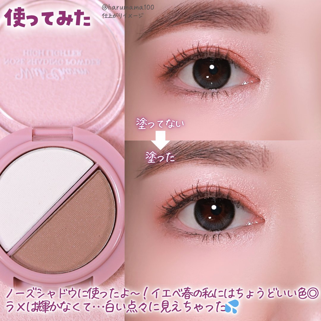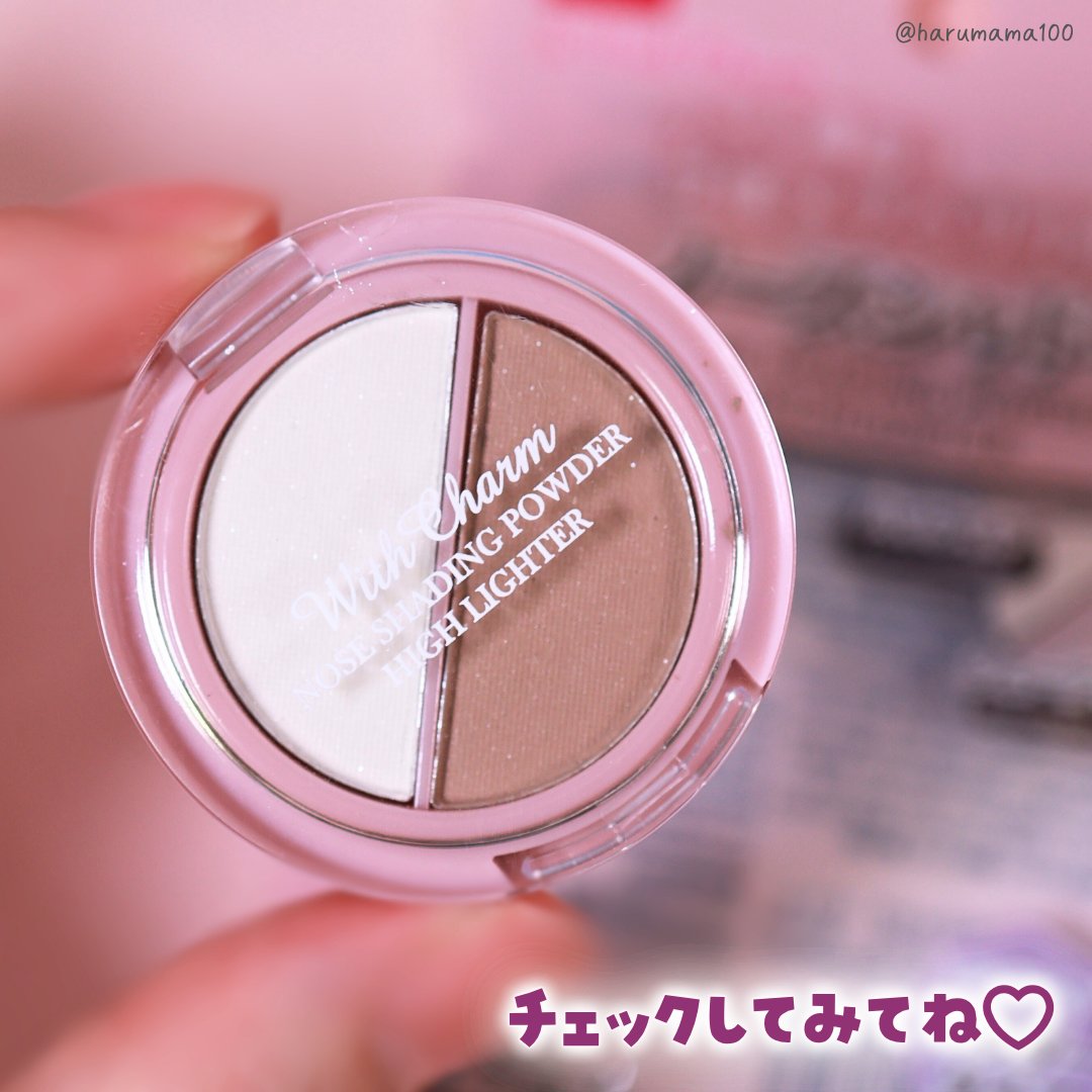 \DAISOで買えるノーズシャドウ!/DAISO&.Wチャームノーズシャドウ¥110サイズ感的にポーチにも入れやすくて可愛い〜!と思って購入したのですが、発色が悪いのと、粉飛びが激しいのでリピはしないかなぁ😭強いて言うなら白い方はちょっと色付...