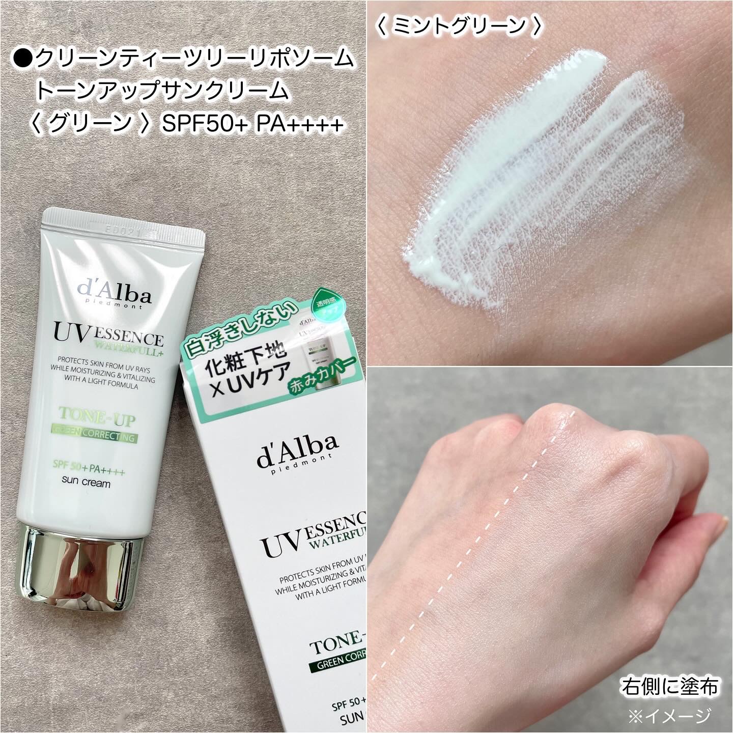 @dalba_japanウォータフルトーンアップサンクリーム一本でベースメイク完成するd'Albaの色で選べる日焼け止め3種・ピンク血色感を出したい時、ナチュラルに仕上げたい日初心者向けのアイテム・パープル補色効果で黄ぐすみを抑えトーンアッ...