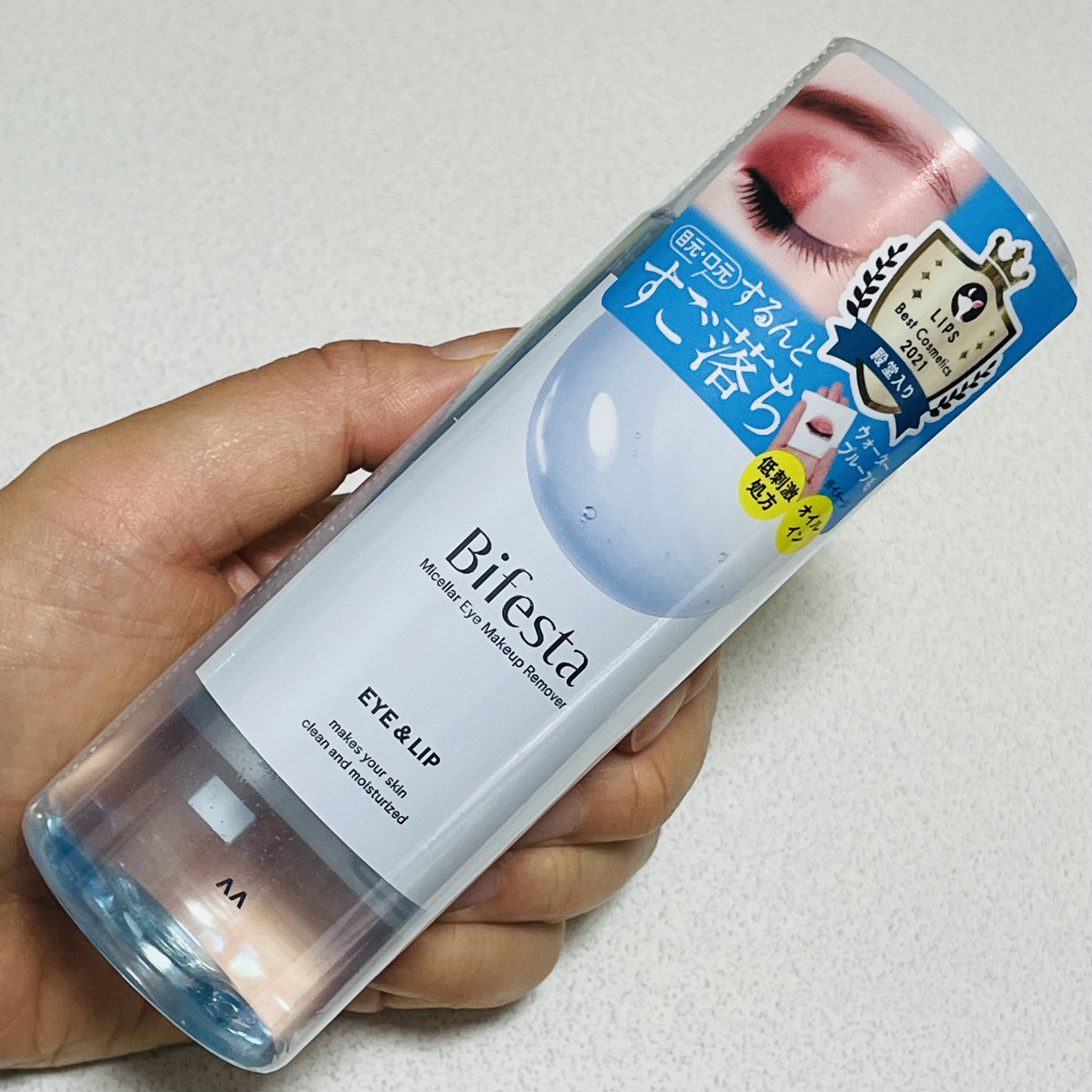 ビフェスタミセラーアイメイクアップリムーバーを使っています。こちらは、ウォーター層とオイル層のダブル効果でウォータープルーフマスカラや落ちにくいリップメイクも素早く落とす2層式ポイントメイクリムーバー。濃いメイクを浮かせる油性エモリエント層と...