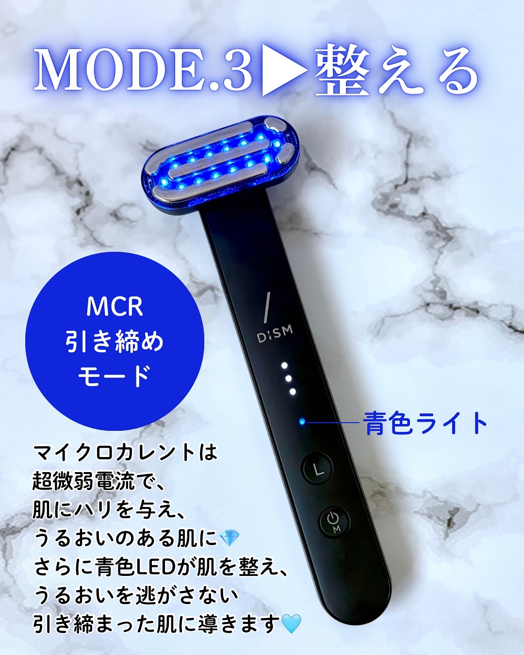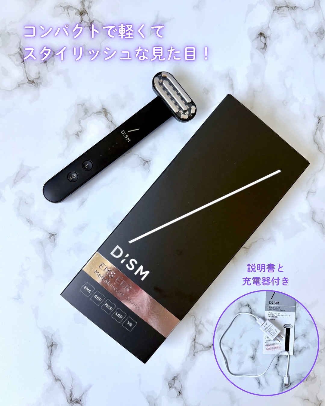 DISMから美容医療発想のメディケア美顔器が新登場💎✨ スリムで軽くてコンパクトサイズなのに多機能✨ 世界初*1うるおい浸透*2機能、EER*3モードが搭載されていて、使った後の肌仕上がりがすごく良くてゲットしてよかった美顔器だよ🖤🩶 8つも機能がある美顔器💎 EMS/EER*3 /RF*4/バイブレーション マイクロカレント/赤色LED/青色LED/温感