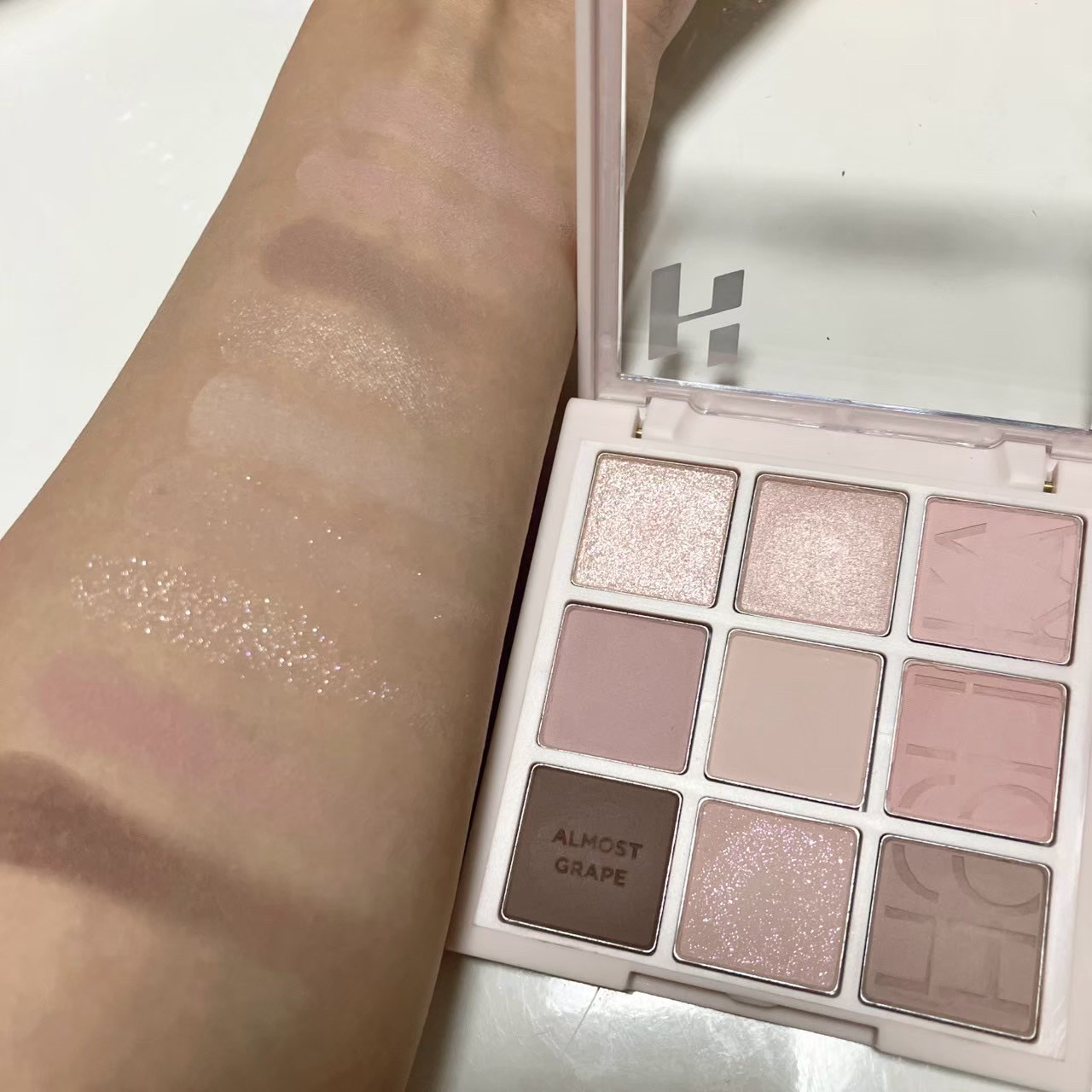 柔らかい発色でニュートラルだけど少しブルベよりなパレット!! 11 レターフロムスプリングにほんのりくすみと青みが追加された感じ🤍 淡めのカラーだからくすんで見える感じはなく落ち着いた色味って感じで可愛い🍇🍼
