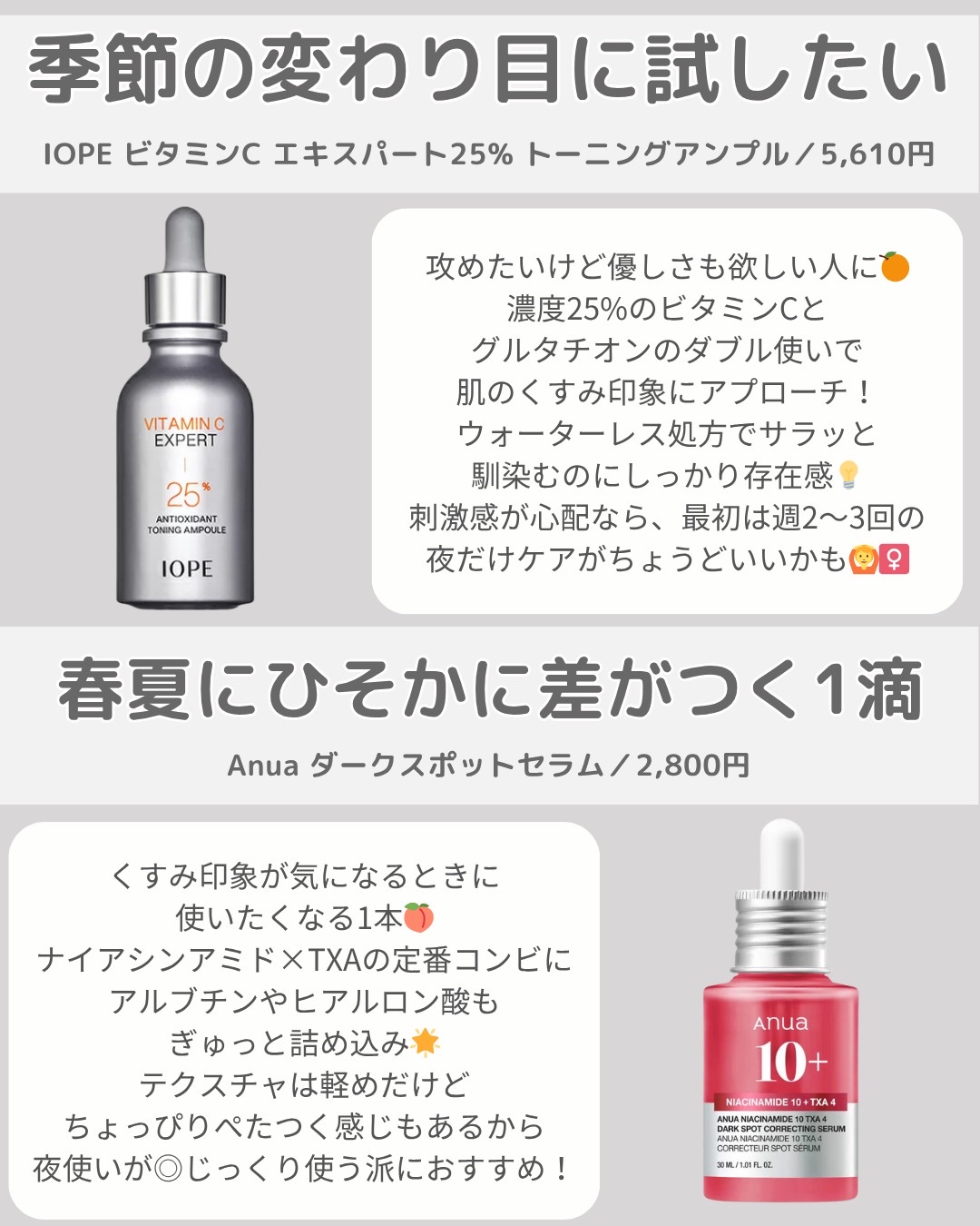なんか最近、肌パッとしないな〜って時ない?🥺そんな時に“これ使ってみたらいい感じかも”って思えた美容液を8つまとめてみたよ🫶とろみ系からさらっと系まで気分や肌の状態に合わせて選べるから保存してあとでゆっくり見てみて👀「これ気になる!」ってのが...