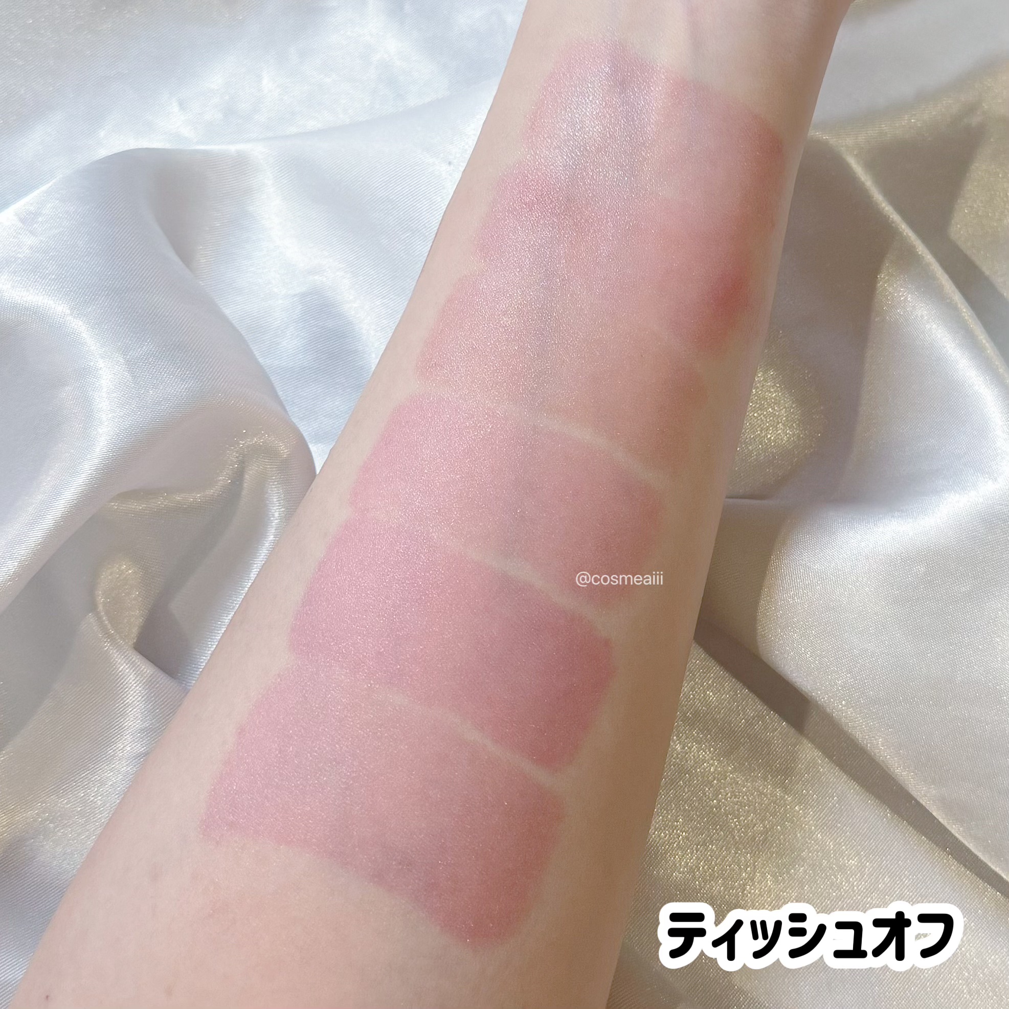 今までみんなご存知のジューシーラスティングティントも愛用してますが 自分的にはかなり高級感がアップした↑ 実物みて感動するぐらいめっちゃ好きなパケ😭🌷 名前通りピーチカラーでイエベさん絶対買って欲しいかわいい色です❤️ イエベさんでも簡単に使えるローズカラーで デートにおすすめなお色です◎ オレンジブラウンカラーで 塗ったら一気にオシャレになれるし秋にぴったりなカラーです🍁 正直。既存のジューシーラスティングティントと似てるような質感ですが くちびるに塗ると新作のほうが若干塗りやすくなった気がします 色持ちは相変わらずめっちゃ良いです◎ 画像の7枚目からはスウォッチ、参考になればと思います。 ティッシュで擦っても色はちゃんと残ってる 既存のティントリップは甘いキャンディな匂いがしたが、 今回の新作は少し匂いもしますが、嫌な甘い匂いではない。 匂い人それぞれ感覚違うですけど、個人的には結構大丈夫だし、むしろ前の商品より好き♡