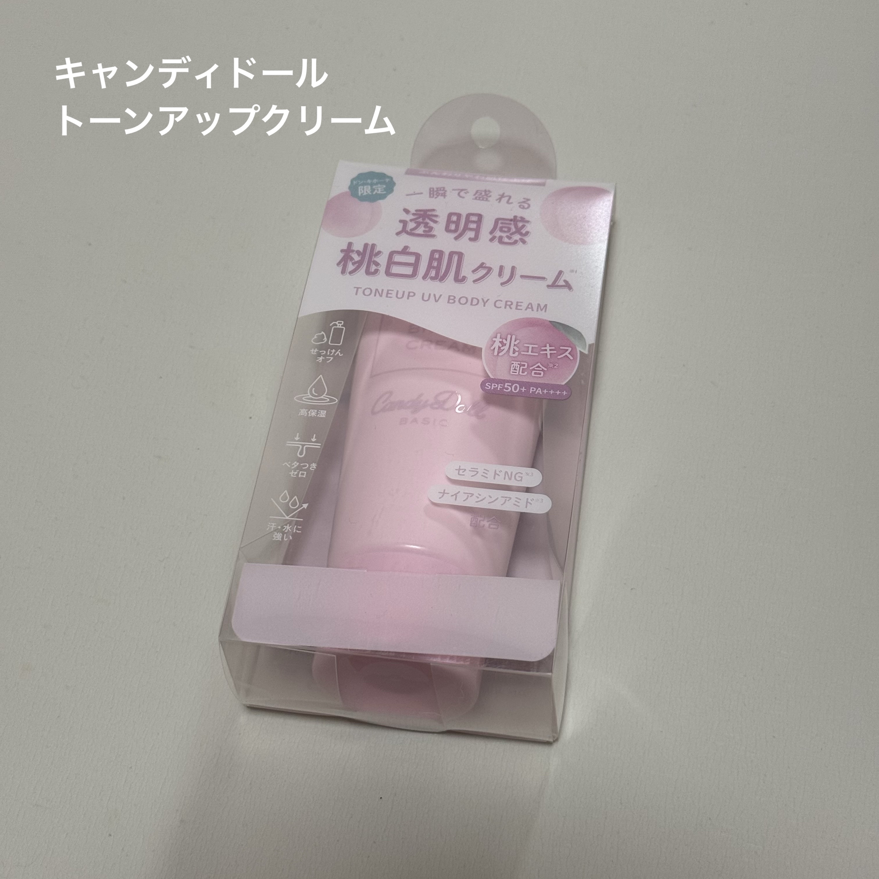 - 【ドン・キホーテ・WEB限定】 \しっかりトーンアップ*を演出!/ 肌トーン補正*×UVカットで ボディもふんわりやわらかな透明感白肌*に魅せる #桃白肌クリーム* 【商品POINT】 ①瞬間トーンアップ*演出 お出かけ前にひと塗りするだけで 肌トーンを補正*しワントーン明るくトーンアップ*して見せる なりたい仕上がりに合わせて選べるカラー展開! ✓自然な透明感と血色感を演出したい方 ✓ふんわりとしたやわ肌に見せたい方 ✓ボディもワントーン明るく見せたい方 ②国内最高のSPF値 SPF50+PA++++で、 お出かけ時も大切なお肌を紫外線からしっかりガード ③お肌に配慮したケア処方 紫外線の乾燥ダメージからお肌をまもる 桃エキス(モモ葉エキス)・セラミドNP・ナイアシンアミド などの美容保湿成分24種類配合 ✓せっけんオフ ✓高保湿 ✓べたつき・きしみにくい ✓汗・水に強い <PEACH> 『ふんわりやわらかな桃白肌*』仕上げ いいとこどりの青みピンクカラーで 血色感をプラスしながらトーンアップ*1演出 *メーキャップ効果による。効果には個人差があります。