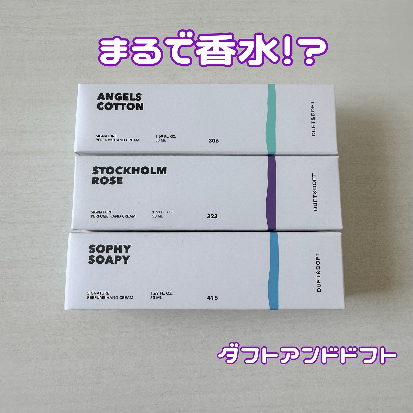 DUFT&DOFT(ダフト&ドフト)シグネチャーパフュームハンドクリーム 香りは4種類 好きな香りを見つけてみてね 韓国で1000万個以上売り上げている 国民的ハンドクリームなんだって まるで香水のようにふわっと香るから気分転換にピッタリです