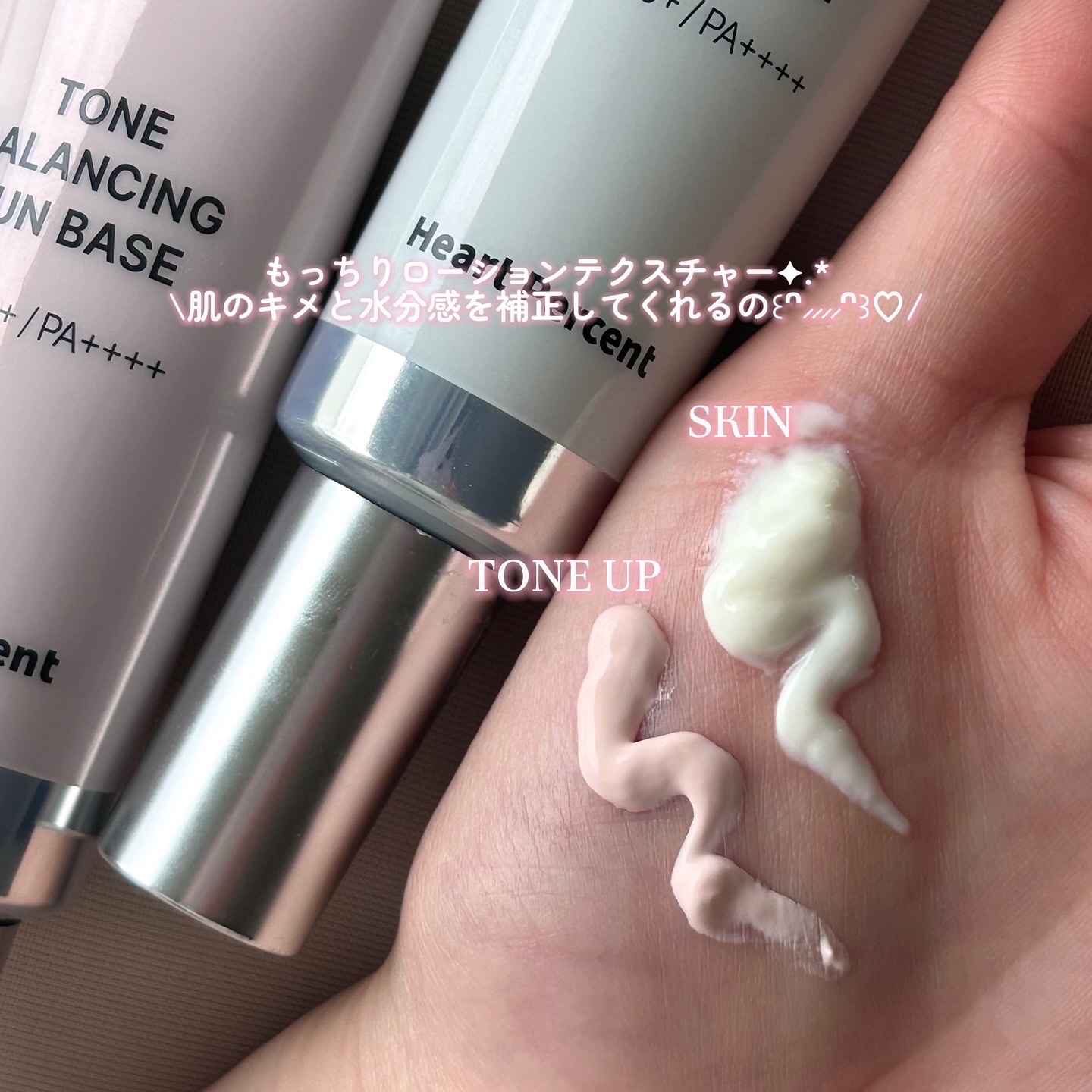 🍒🎀HeartPercent.⋆𝜗𝜚トーンバランシングサンベースオールカバーリップベーススキンバランシングサンベースに続いて、トーンアップ効果のある新作日焼け止め下地が登場🪄◝✩さらっとした使い心地でくすみや色ムラを自然にカバーし、肌をワント...