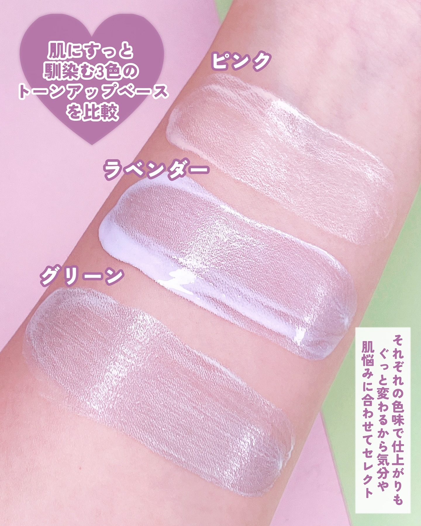 まるで美容液♡みずみずしく輝き上品な艶肌に仕上げる下地✨ しっとりなめらかなお肌に整え、パールによる艶めきをプラス!肌の内側からうるおいが溢れ出るような明るい艶肌に🔆 パールの効果で毛穴・くすみなどの肌悩みを光で飛ばすように自然にカバー!明るくフラットなお肌に見せてくれるよ🫶 白浮きせずに艶と透明感を仕込めるラベンダーカラー💜発光したような澄んだ肌印象に👱🏻♀️💘