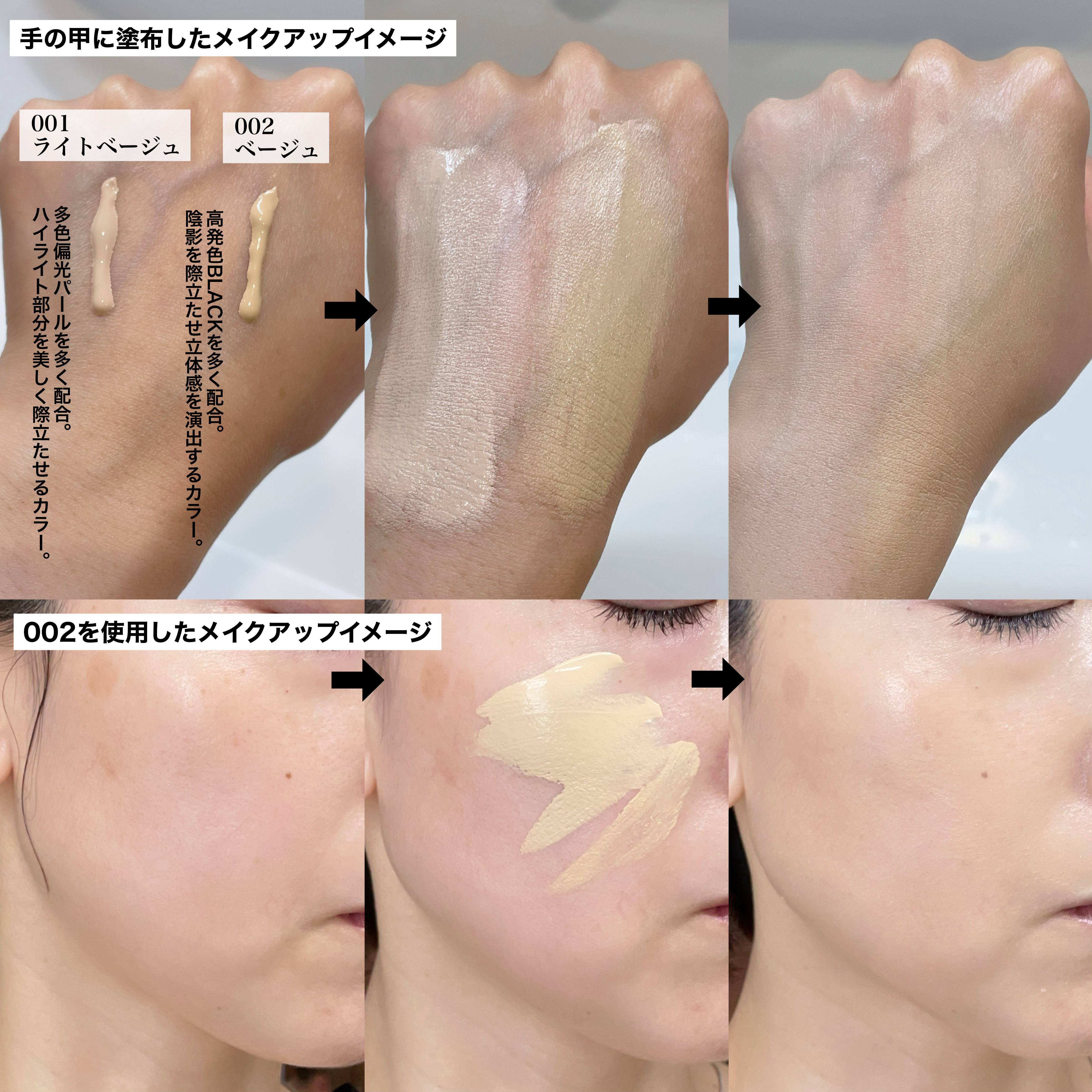 - <001 ライトベージュ> シクロペンタシロキサン、酸化チタン、水、トリエチルヘキサノイン、BG、グリセリン、マイカ、PEG-10ジメチコン、トリメチルシロキシケイ酸、(HDI/トリメチロールヘキシルラクトン)クロスポリマー、ジメチコン、シリカ、スクワラン、水酸化Al、ステアリン酸、オクチルドデカノール、マカデミア種子油、イソステアリン酸、アルガニアスピノサ核油、シア脂、オリーブ果実油、ヒマワリ種子油、オリザノール、トウキンセンカエキス、セイヨウサクラソウ花エキス、セイヨウノコギリソウ花/葉/茎エキス、セイヨウハッカ葉エキス、ゼニアオイ花/葉/茎エキス、ハゴロモグサ花/葉/茎エキス、ベロニカオフィシナリス花/葉/茎エキス、メリッサ葉エキス、ローズマリー葉エキス、クエン酸Na、トリイソステアリン酸ポリグリセリル-2、ジステアルジモニウムヘクトライト、(ジメチコン/ビニルジメチコン)クロスポリマー、タルク、メチルパラベン、炭酸Ca、メタクリル酸メチルクロスポリマー、アルミナ、グルコノバクター/ハチミツ発酵液、水溶性コラーゲン、フィチン酸、クエン酸、トコフェロール、フェノキシエタノール、酸化鉄 <002 ベージュ> シクロペンタシロキサン、酸化チタン、水、トリエチルヘキサノイン、BG、グリセリン、マイカ、PEG-10ジメチコン、トリメチルシロキシケイ酸、(HDI/トリメチロールヘキシルラクトン)クロスポリマー、ジメチコン、シリカ、スクワラン、水酸化Al、ステアリン酸、オクチルドデカノール、マカデミア種子油、イソステアリン酸、アルガニアスピノサ核油、シア脂、オリーブ果実油、ヒマワリ種子油、オリザノール、トウキンセンカエキス、セイヨウサクラソウ花エキス、セイヨウノコギリソウ花/葉/茎エキス、セイヨウハッカ葉エキス、ゼニアオイ花/葉/茎エキス、ハゴロモグサ花/葉/茎エキス、ベロニカオフィシナリス花/葉/茎エキス、メリッサ葉エキス、ローズマリー葉エキス、クエン酸Na、トリイソステアリン酸ポリグリセリル-2、ジステアルジモニウムヘクトライト、(ジメチコン/ビニルジメチコン)クロスポリマー、タルク、メチルパラベン、炭酸Ca、メタクリル酸メチルクロスポリマー、アルミナ、グルコノバクター/ハチミツ発酵液、水溶性コラーゲン、フィチン酸、クエン酸、トコフェロール、フェノキシエタノール、酸化鉄