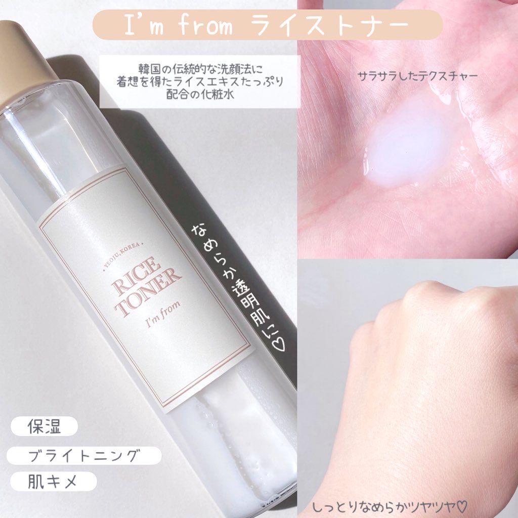 韓国の自然派スキンケアブランド𝙸'𝚖𝚏𝚛𝚘𝚖(アイムフロム)の人気シリーズ『ライスライン』◾︎ライストナー韓国ヨンチョン産米エキス約77%配合の2層式トナー。乳白色のサラッとしたテクスチャーでスッと肌に馴染んでしっとりもっちり♪◾︎ライスセラ...