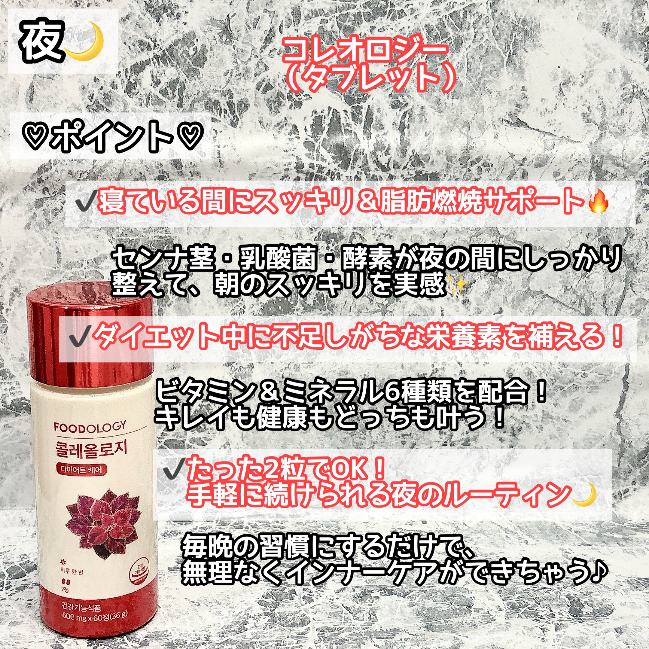 | サプリメント・フードランキング第128位 | 寝る前に2錠飲むだけなのが良いです♪ パッケージのボトルもカワイイ♪ | 詳細を見る | |