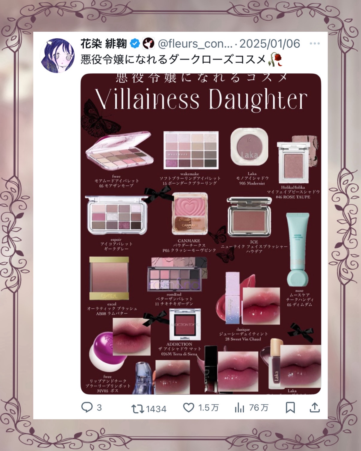rom&ndゼロベルベットティント21ヴィランベスト¥1,320まるでヴィランのような唇になるダークなレッドカラーのティントリップです!マットなので多少の乾燥はありました!ティッシュオフ時の画像で分かる通り、落ちると蛍光ピンクぽさが出るのが悲...
