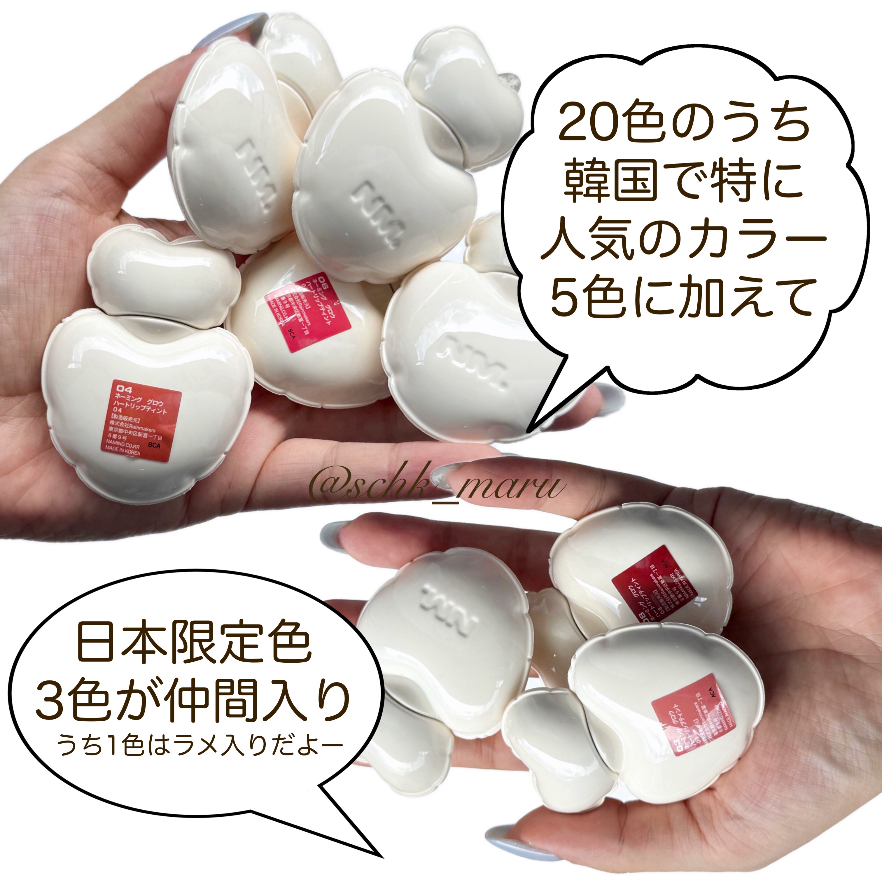 #PR#ネーミングハートバルーンデザインが可愛い@Naming_japanのリップティント。塗った瞬間は、普通??って思うけど、そのままキープで30秒経つと唇がツヤピカに😍🩷私が使った#03_WIGは日本限定色。落ち着いたピンクベージュカラー...