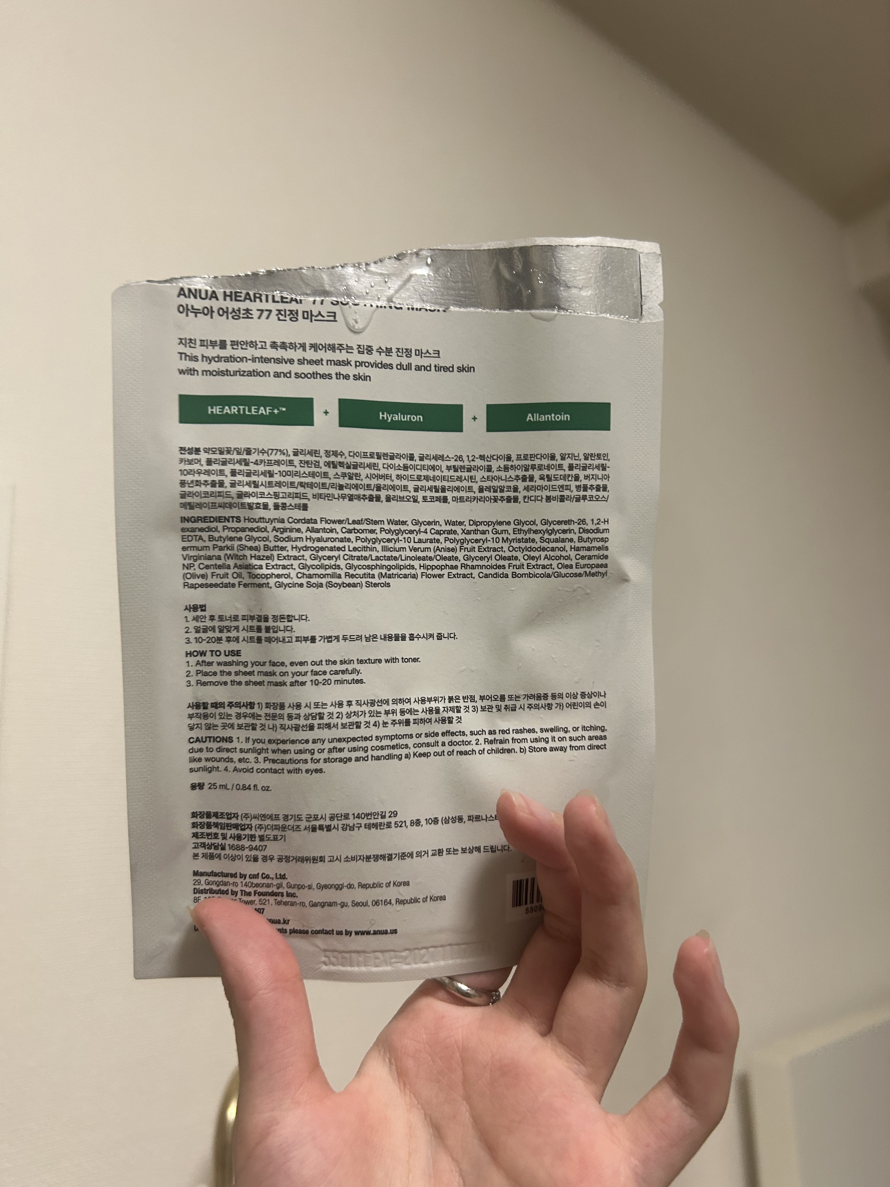 商品詳細情報Anua HEARTLEAF 77 SOOTHING TONER CICA EXOSOME MASK