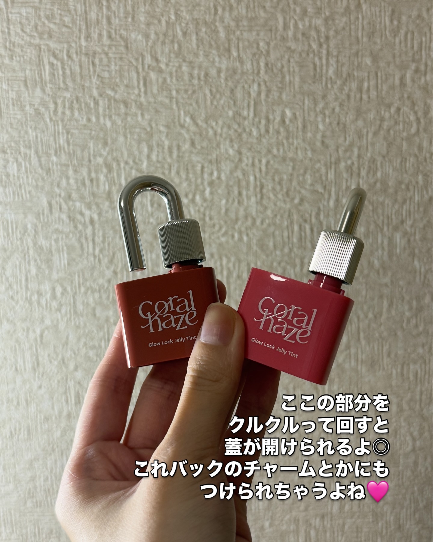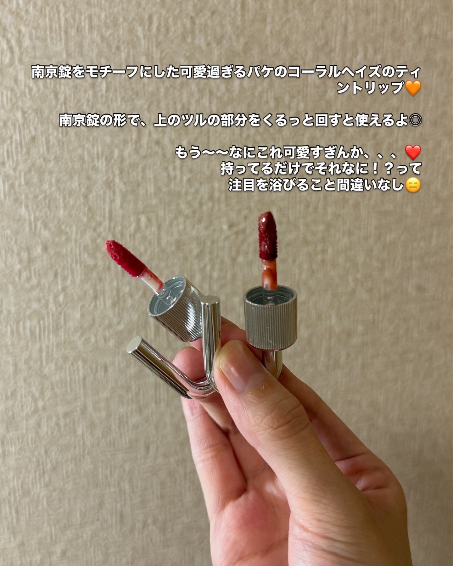 南京錠がモチーフになったティント🔓ˊ˗ かわいい見た目だけじゃなく付け心地も重たくないし、うるうるでちゅるん✦とした唇になれて好き💘 プランピング効果はないのにぷるんとなるのが不思議.′.′ フルーティな香りがするよ🍑🍎‧⁺ ⊹˚. Qoo10で購入できます🛒ꔛ