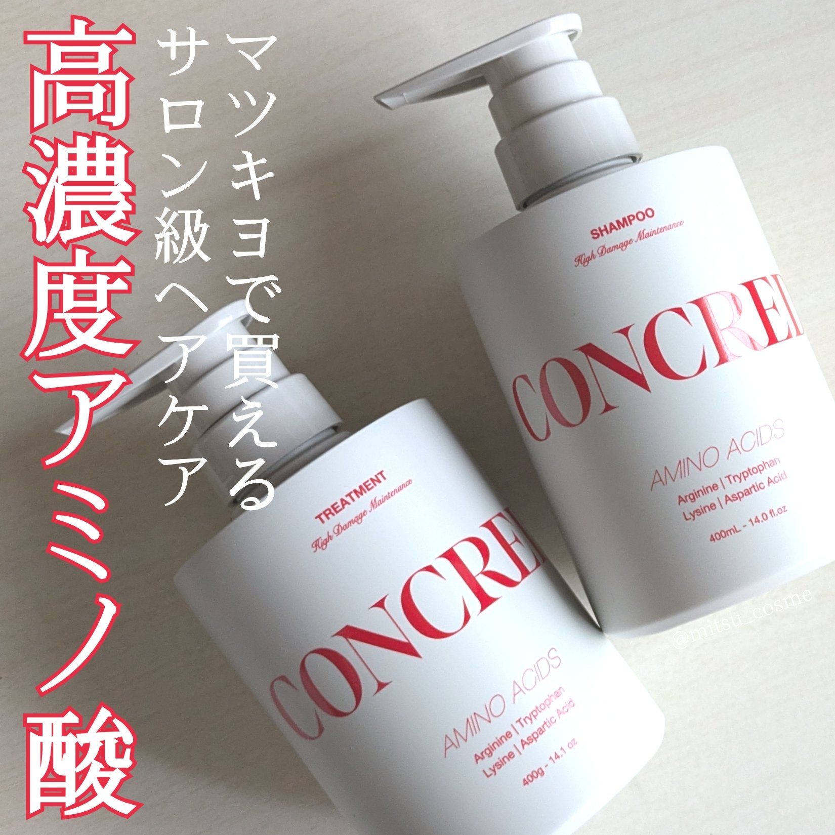 matsukiyoCONCREDハイダメージメンテナンスシャンプー/トリートメント⋆⋆︎︎︎︎︎︎☑︎ダメージ要因により流出するアミノ酸が高濃度配合︎︎︎︎︎︎☑︎ヘアダメージ別に洗浄剤・補修成分を厳選配合︎︎︎︎︎︎☑︎サロン級のヘアケアが...