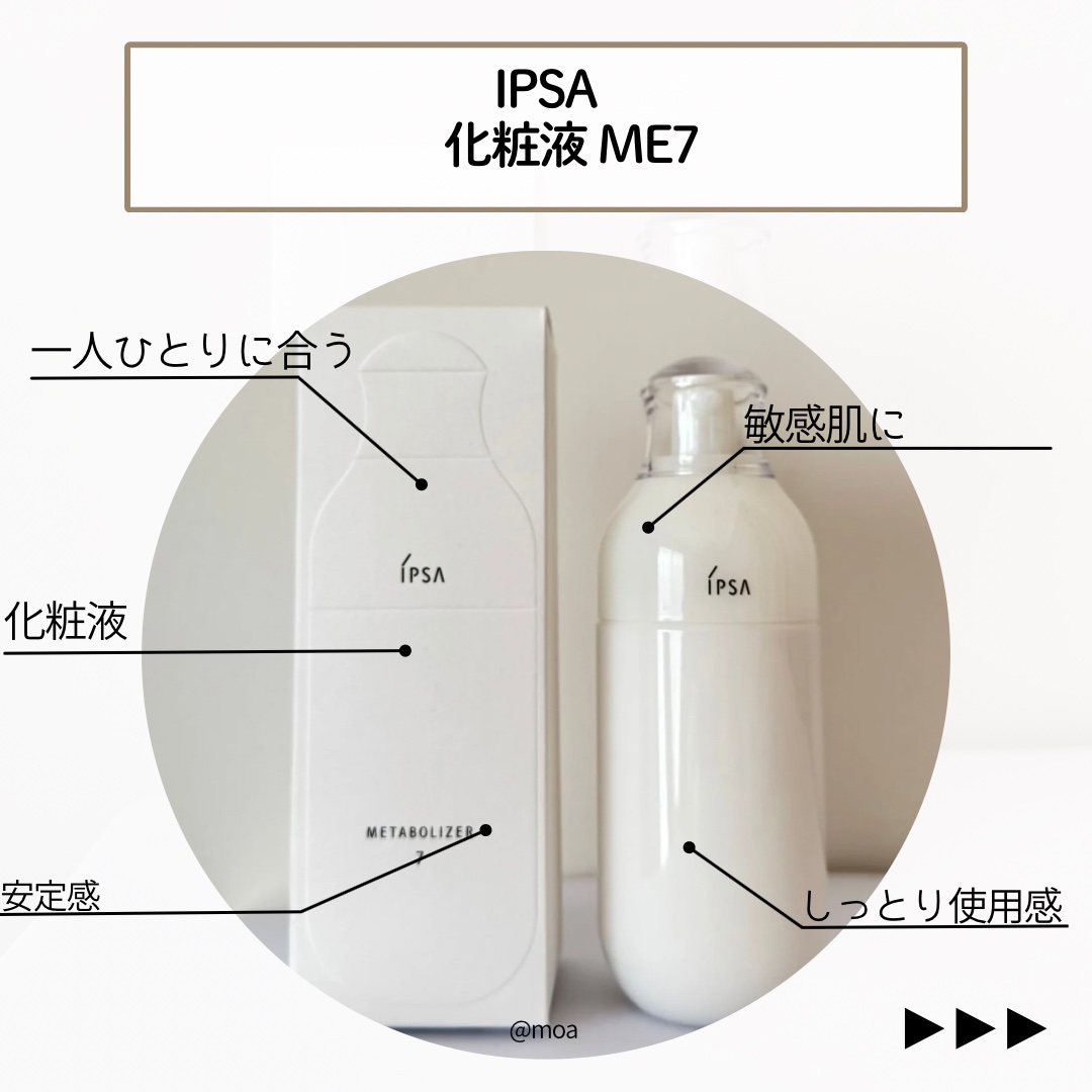 イプサの化粧液MEは、化粧水と乳液の機能を兼ね備え、基本のケアが一本でできる高機能アイテム👏 私はアンケートでイプサ ME 8が自分にぴったりでした😋✨ 乾燥肌で、みずみずしさとツヤが不足しがちなので💭🥹 ベタベタしないしっとり感がすごく良かった😍💞 コットンでケアするってあんまりないので、なんだか肌を労ってる時間が癒される⏳