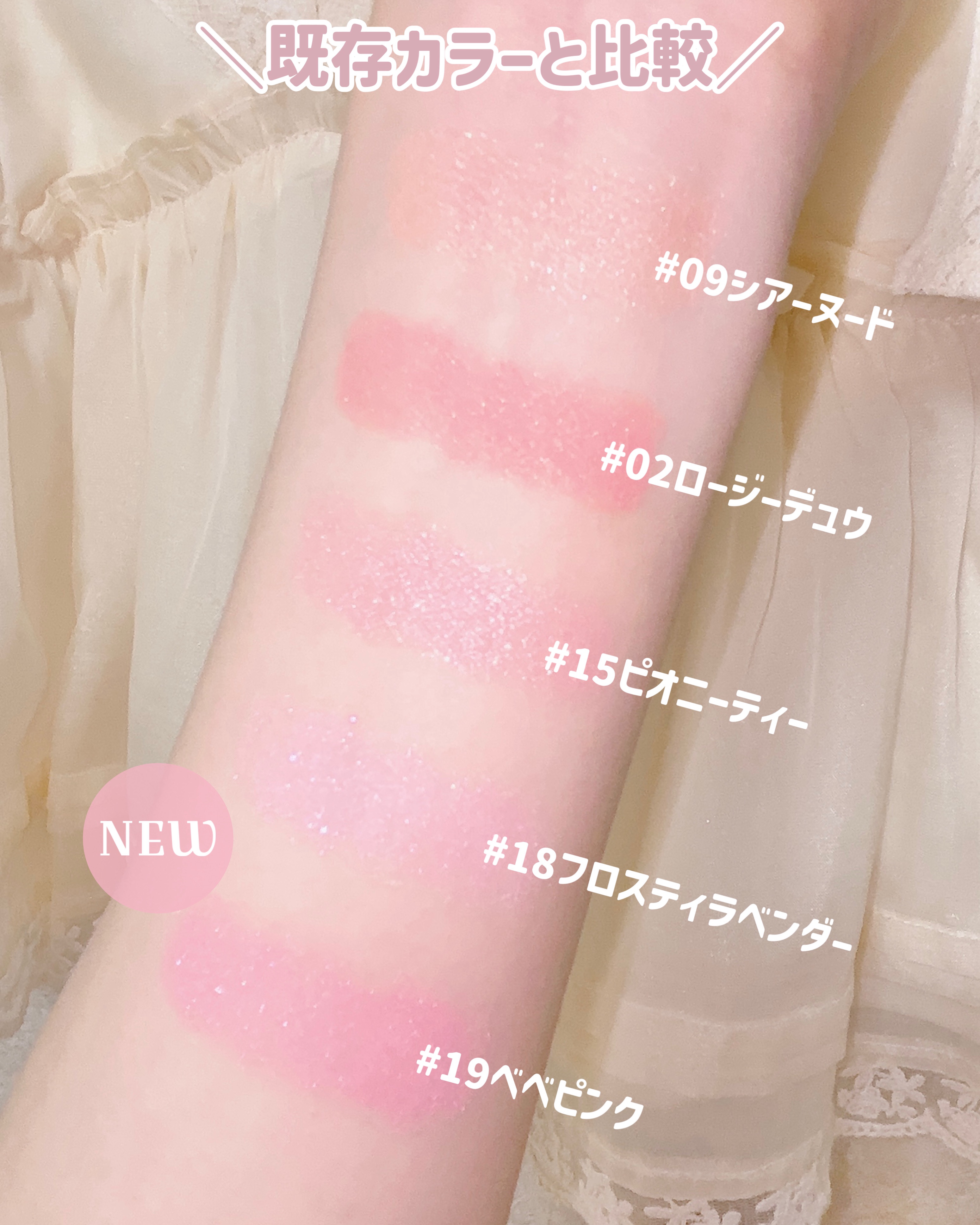 - <#1 Shining Linen(シャイニングリネン) > マイカ、酸化チタン、(ジメチコン/ジビニルジメチコン/シルセスキオキサン)クロスポリマー、シリカ、ナイロン-12、ポリメタクリル酸メチル、ベヘノキシPEG-10ジメチコン、ヤシ油脂肪酸イソアミル、ジメチコン、窒化ホウ素、合成フルオロフロゴパイト、ペンチレングリコール、トリ(ベヘン酸/イソステアリン酸/エイコサン二酸)グリセリル、酸化鉄、カプリリルグリコール、クエン酸トリエチル、ケイ酸(Al/Mg)、エチルヘキシルグリセリン、アルギン酸Na、ポリアクリル酸Na、カプリルヒドロキサム酸、グリセリン、酸化スズ、トコフェロール <#2 Rosy Dew(ロージーデュー)> 酸化チタン、マイカ、(ジメチコン/ジビニルジメチコン/シルセスキオキサン)クロスポリマー、シリカ、ナイロン-12、ポリメタクリル酸メチル、ベヘノキシPEG-10ジメチコン、ヤシ油脂肪酸イソアミル、酸化鉄、ジメチコン、窒化ホウ素、合成フルオロフロゴパイト、ペンチレングリコール、トリ(ベヘン酸/イソステアリン酸/エイコサン二酸)グリセリル、カプリリルグリコール、クエン酸トリエチル、コチニール、ケイ酸(Al/Mg)、エチルヘキシルグリセリン、アルギン酸Na、ポリアクリル酸Na、カプリルヒドロキサム酸、グリセリン、トコフェロール <#8 Scented Bouquet(センティッドブーケ) > マイカ、酸化チタン、(ジメチコン/ジビニルジメチコン/シルセスキオキサン)クロスポリマー、シリカ、ナイロン-12、酸化鉄、ポリメタクリル酸メチル、ベヘノキシPEG-10ジメチコン、ヤシ油脂肪酸イソアミル、ジメチコン、窒化ホウ素、合成フルオロフロゴパイト、ペンチレングリコール、トリ(ベヘン酸/イソステアリン酸/エイコサン二酸)グリセリル、カプリリルグリコール、クエン酸トリエチル、コチニール、ケイ酸(Al/Mg)、エチルヘキシルグリセリン、アルギン酸Na、ポリアクリル酸Na、カプリルヒドロキサム酸、グリセリン、トコフェロール <#9 Sheer Nude(シアーヌード)> マイカ、酸化チタン、(ジメチコン/ジビニルジメチコン/シルセスキオキサン)クロスポリマー、シリカ、ナイロン-12、ポリメタクリル酸メチル、ベヘノキシPEG-10ジメチコン、ヤシ油脂肪酸イソアミル、ジメチコン、窒化ホウ素、酸化鉄、合成フルオロフロゴパイト、ペンチレングリコール、トリ(ベヘン酸/イソステアリン酸/エイコサン二酸)グリセリル、カプリリルグリコール、クエン酸トリエチル、ケイ酸(Al/Mg)、エチルヘキシルグリセリン、アルギン酸Na、ポリアクリル酸Na、カプリルヒドロキサム酸、グリセリン、トコフェロール <#10 Classy Fig(クラッシィーフィグ)> マイカ、酸化チタン、(ジメチコン/ジビニルジメチコン/シルセスキオキサン)クロスポリマー、ホウケイ酸(Ca/Na)、シリカ、酸化鉄、ナイロン-12、ポリメタクリル酸メチル、ベヘノキシPEG-10ジメチコン、ヤシ油脂肪酸イソアミル、ジメチコン、窒化ホウ素、合成フルオロフロゴパイト、ペンチレングリコール、トリ(ベヘン酸/イソステアリン酸/エイコサン二酸)グリセリル、カプリリルグリコール、クエン酸トリエチル、ケイ酸(Al/Mg)、カルミン、エチルヘキシルグリセリン、アルギン酸Na、ポリアクリル酸Na、カプリルヒドロキサム酸、グリセリン、酸化スズ、トコフェロール <#11 Dew Beige(デューベージュ)> 酸化チタン、マイカ、ホウケイ酸(Ca/Na)、(ジメチコン/ジビニルジメチコン/シルセスキオキサン)クロスポリマー、シリカ、ナイロン-12、ポリメタクリル酸メチル、ベヘノキシPEG-10ジメチコン、ヤシ油脂肪酸イソアミル、ジメチコン、窒化ホウ素、合成フルオロフロゴパイト、ペンチレングリコール、トリ(ベヘン酸/イソステアリン酸/エイコサン二酸)グリセリル、カプリリルグリコール、クエン酸トリエチル、ケイ酸(Al/Mg)、酸化鉄、エチルヘキシルグリセリン、アルギン酸Na、ポリアクリル酸Na、カプリルヒドロキサム酸、グリセリン、酸化スズ、コチニール、マルトデキストリン、トコフェロール