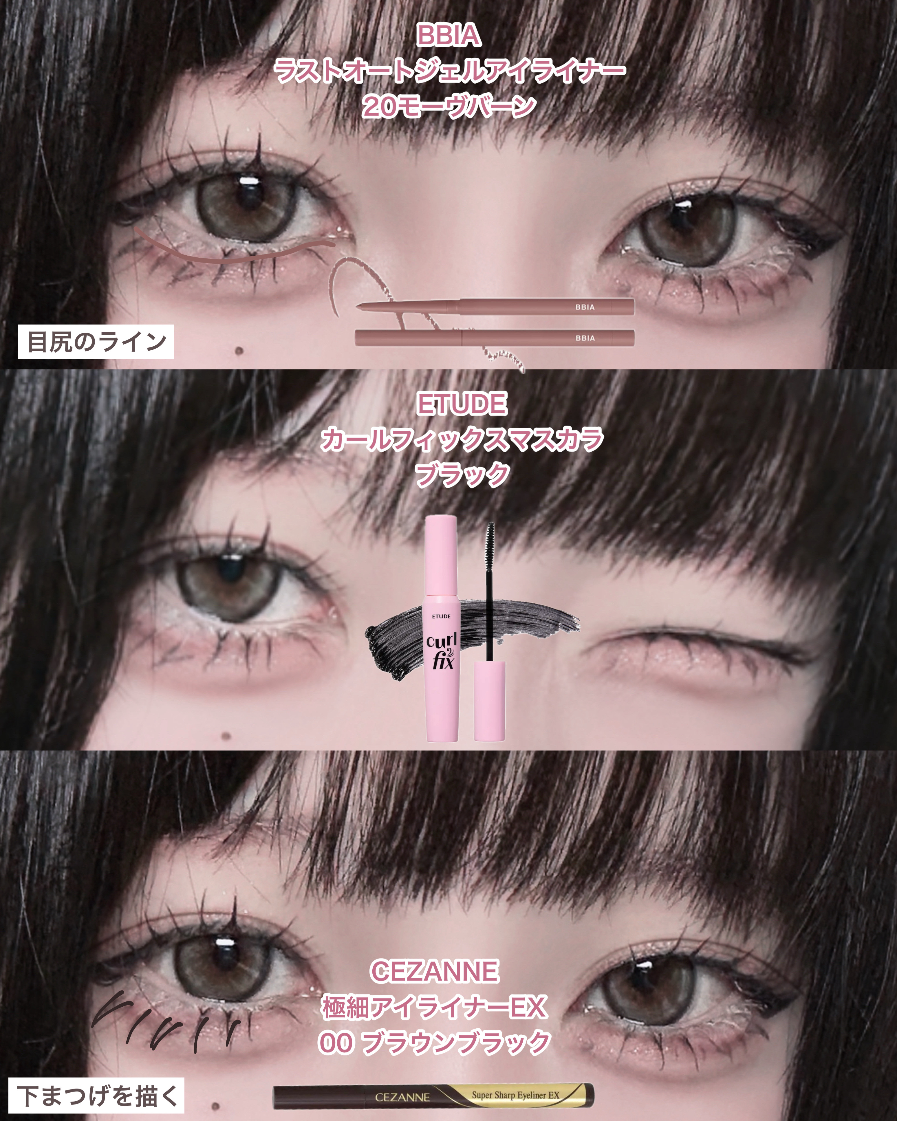 まつ毛の束感の作り方⤵︎⤵︎⤵︎ クマの隠し方と眉毛については後日詳しく紹介します.ᐟ .ᐟ 特にクマの隠し方はめちゃめちゃおすすめの方法なのでビフォーアフターで紹介します!