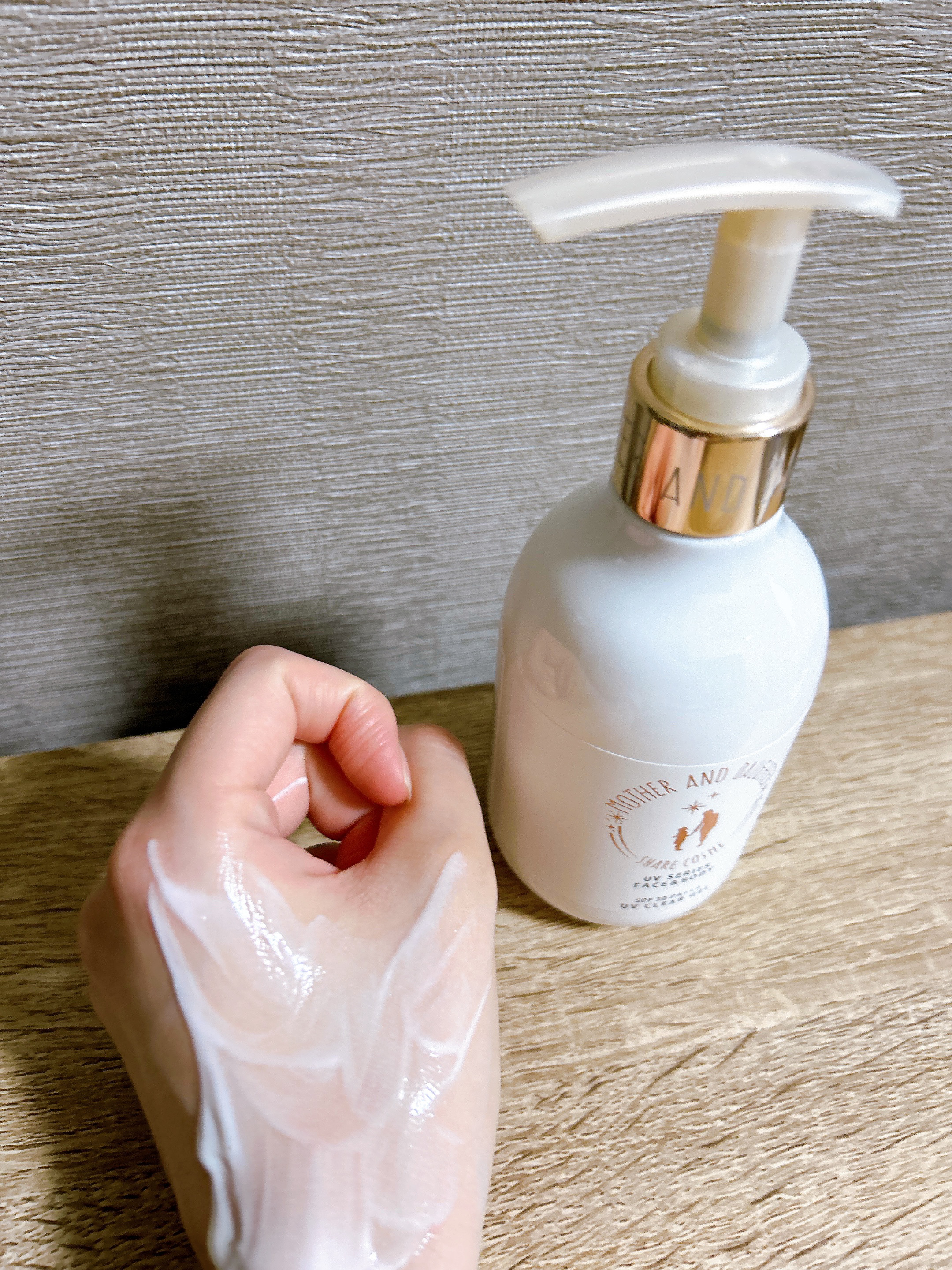 テクスチャーは滑らかで、とても伸びが良いです💕 本当に日焼け止め?と疑うほど、クリームのような心地よい使用感😌 きしむ感じやカサカサ感が全くなく、お肌に潤いを与えてくれる感覚に。 そしてお気に入りポイントは化粧下地としても使えること!日焼け止めと下地を両方塗らなくても良いのは便利ですよね✨ 白浮きしない程度に程よくトーンアップもしてくれるので、私はちょっとしたお出かけのときはファンデなしでこれひとつでベースを済ませちゃいます☺️ 肌負担かけずに時短でメイク完成できちゃうのがお気に入り💕